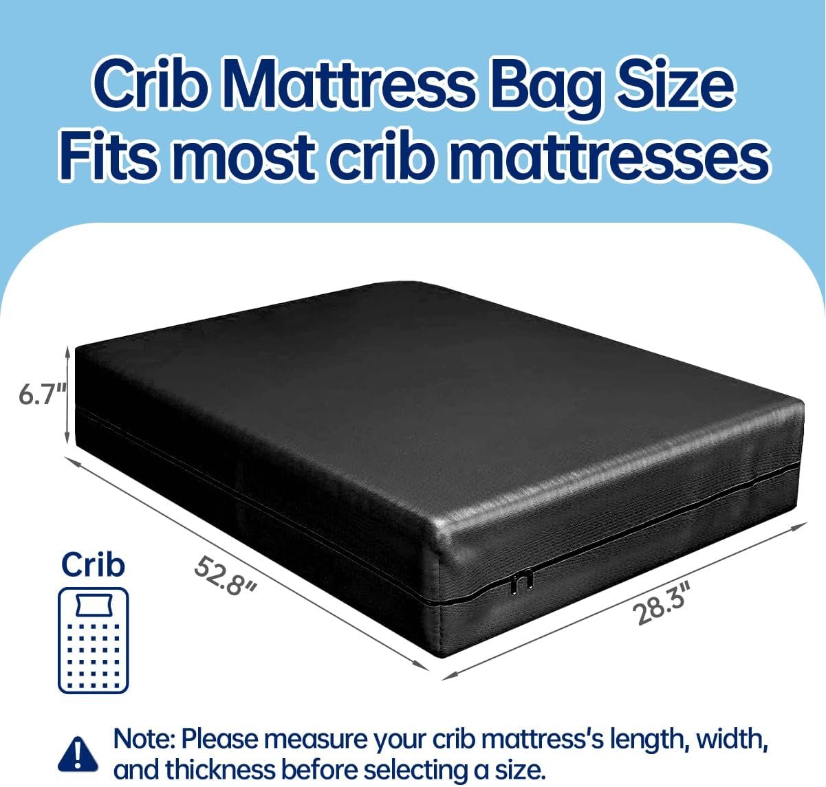 Universal Size 52.8″x28.3″x6.7″:Fits most standard crib/toddler mattresses (check your dimensions) – ideal for moving houses, storage, or travel