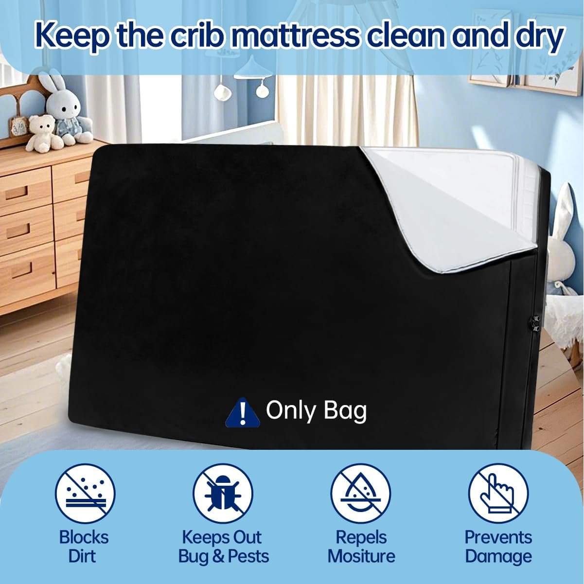 Crib Mattress Storage Bag with Zipper Heavy Duty Water-Resistant Crib Mattress Cover for Moving & Long-Term Protection,Reusable,Universal Fit