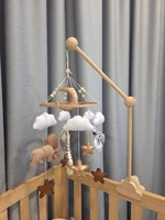 Wooden Baby Rattle Mobile 0-12Month Soft Felt Cartoon Sheep Star Moon Newborn Music Box Hanging Bed Bell Mobile Crib Bracket Toy