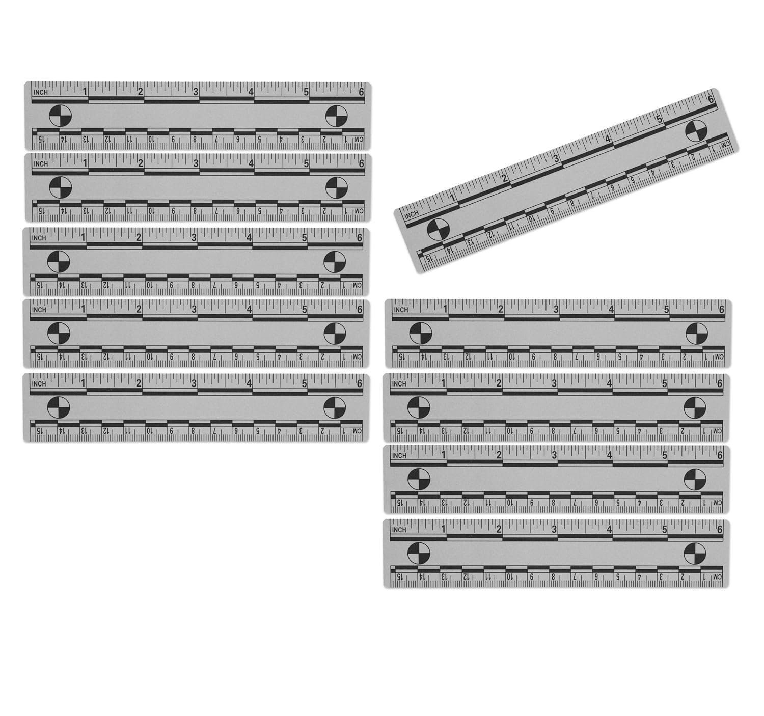 Crime Scene Professional Evidence Photography Scale, 10-Pack, 15cm/6inch Vinyl Rulers with Reference Circles, Dual Measurement (Grey)