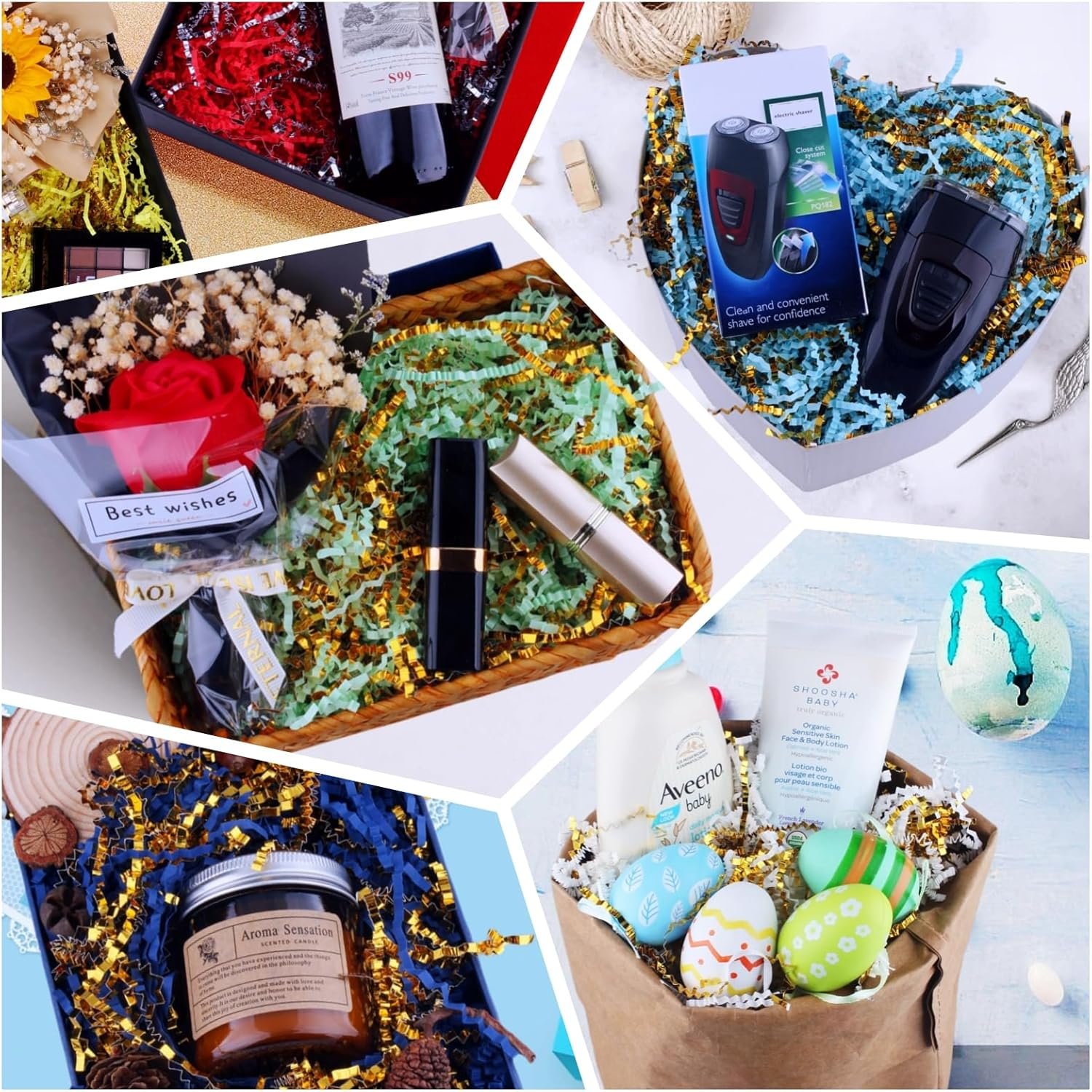 Versatile crinkle paper for packaging is the perfect decorative shredded paper for gift boxes gift baskets,Easter baskets,display boxes for merchandise,food boxes,business gifting,handicraft packaging,business event,subscription boxes and mailers filler paper.