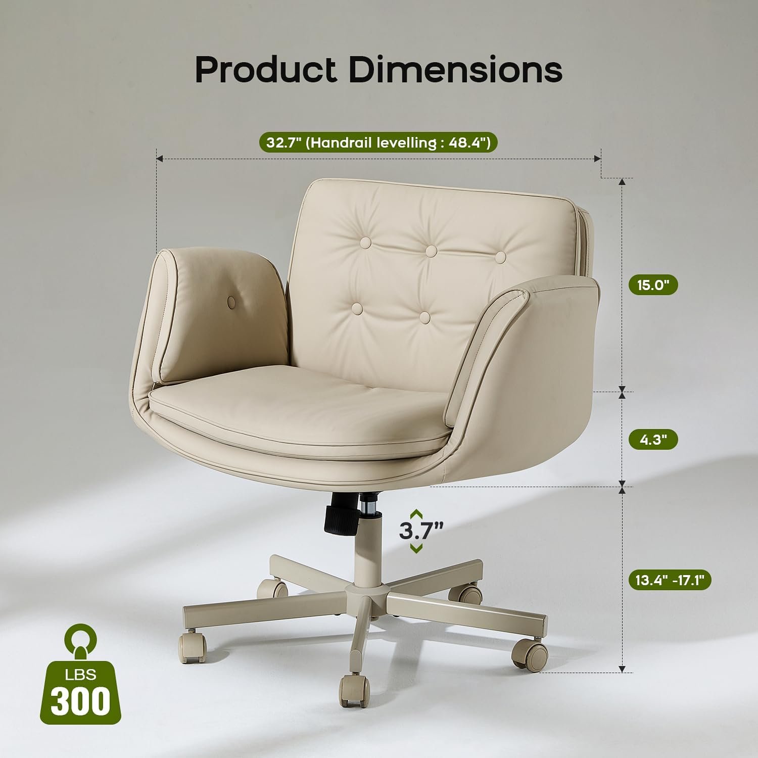 Criss Cross Chair with Armrests & Wheels, PU Leather Vanity Chair, Comfortable Adjustable Swivel Computer Office Desk Chairs for Home, Make Up, Bed Room (Cream White)