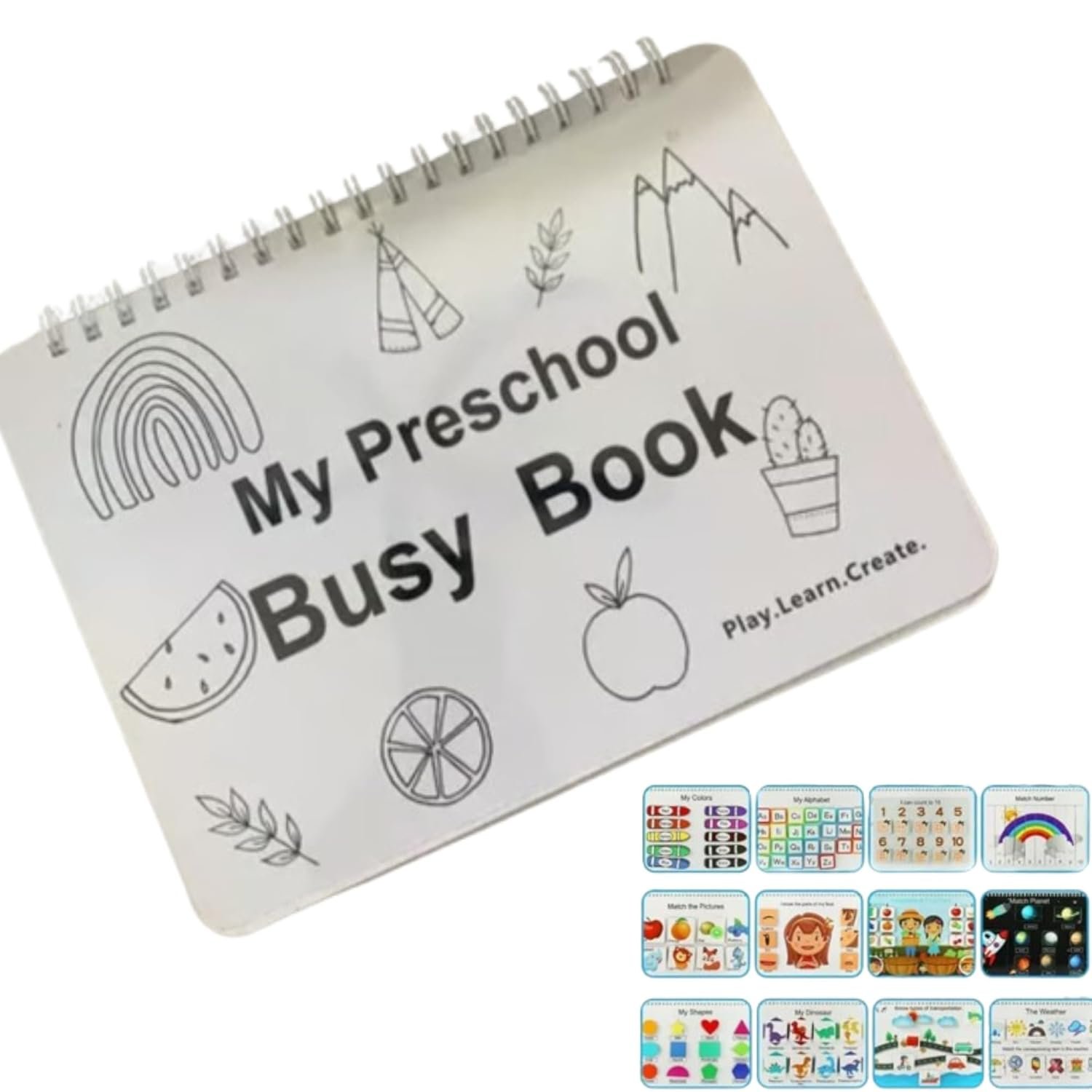 1.12 Themes of Preschool Learning Activities: Our My Preschool Busy Book is designed to make learning fun and interactive for preschoolers and toddlers.The book features 12 different and exciting themes for toddler learning activities ages 2-4, which including colors, shapes, letters, numbers, weather, and more