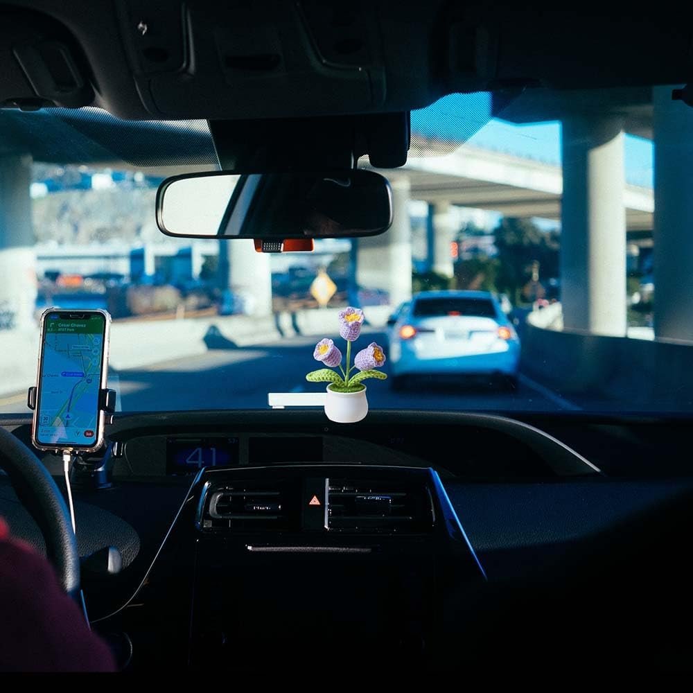 This cute car crochet center console decoration has three fowers and two leaves, they are all in a white pot, sturdy and cute. Flower shape, smallando mini, not blocking your sightThey will accompany you every trip.Suitable for car decoration, interior decoration, become a different landscape