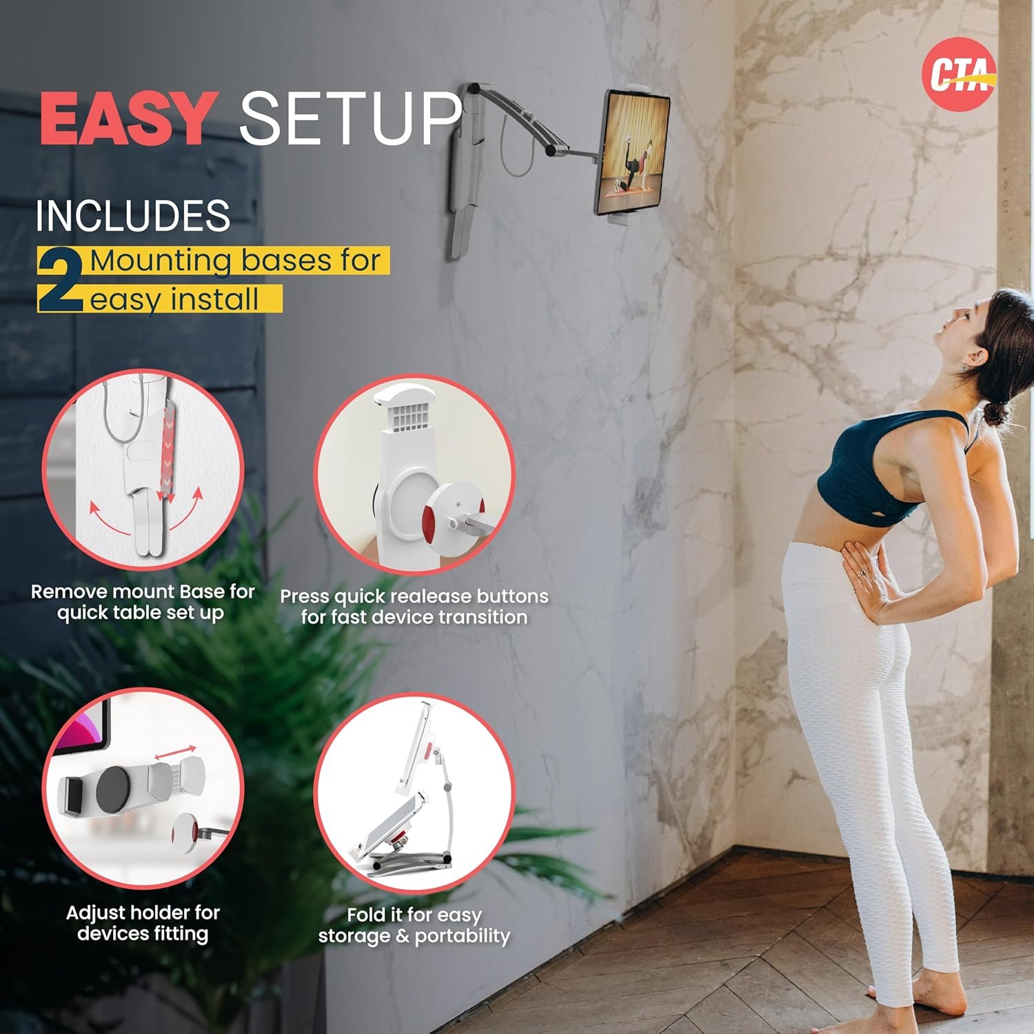 CTA Digital 3-in-1 iPad Tablet Mount – Multipurpose Universal Kitchen Mount Holder for All iPad Tablets 7-13″ – Made for Wall – Under Cabinet & Desk – Silver (PAD-KMS)