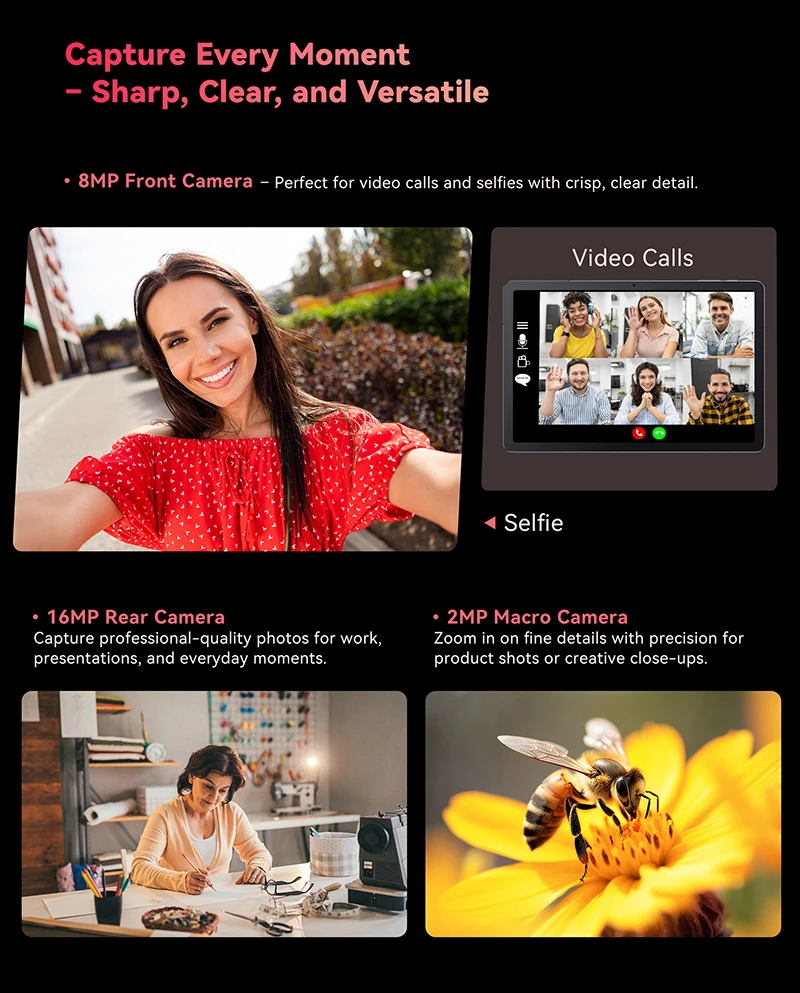 16MP Rear Camera – Capture professional-quality photos for work, presentations, and everyday moments.