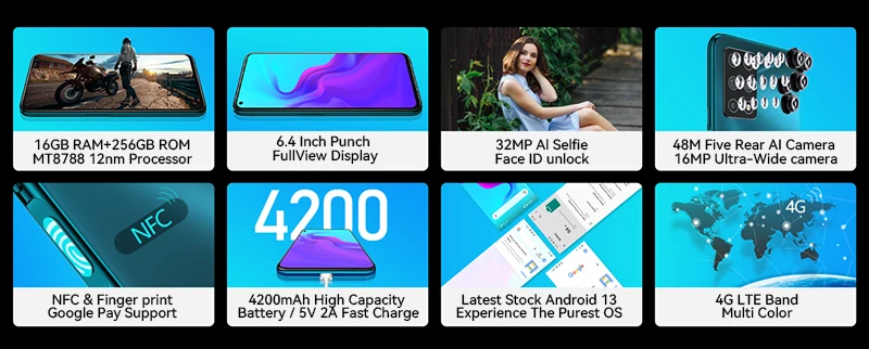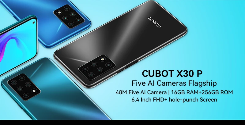 Cubot X30P, Smartphone Android 13, 48MP Five Camera, 16GB RAM, 256GB ROM, NFC, 6.4″ FHD+ Hole-punch Screen, 4200mAh, 4G Phone