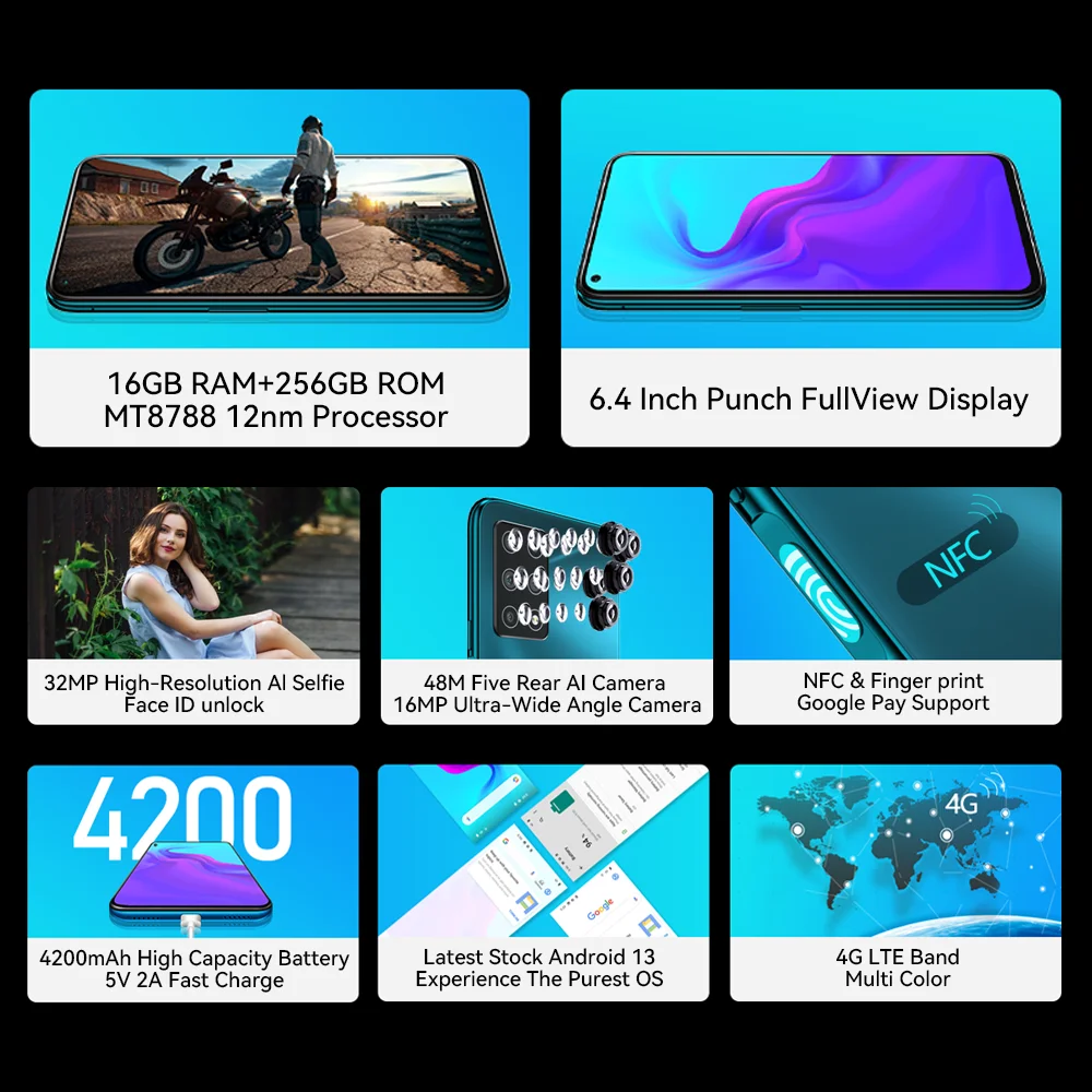 Cubot X30P, Smartphone Android 13, 48MP Five Camera, 16GB RAM, 256GB ROM, NFC, 6.4″ FHD+ Hole-punch Screen, 4200mAh, 4G Phone