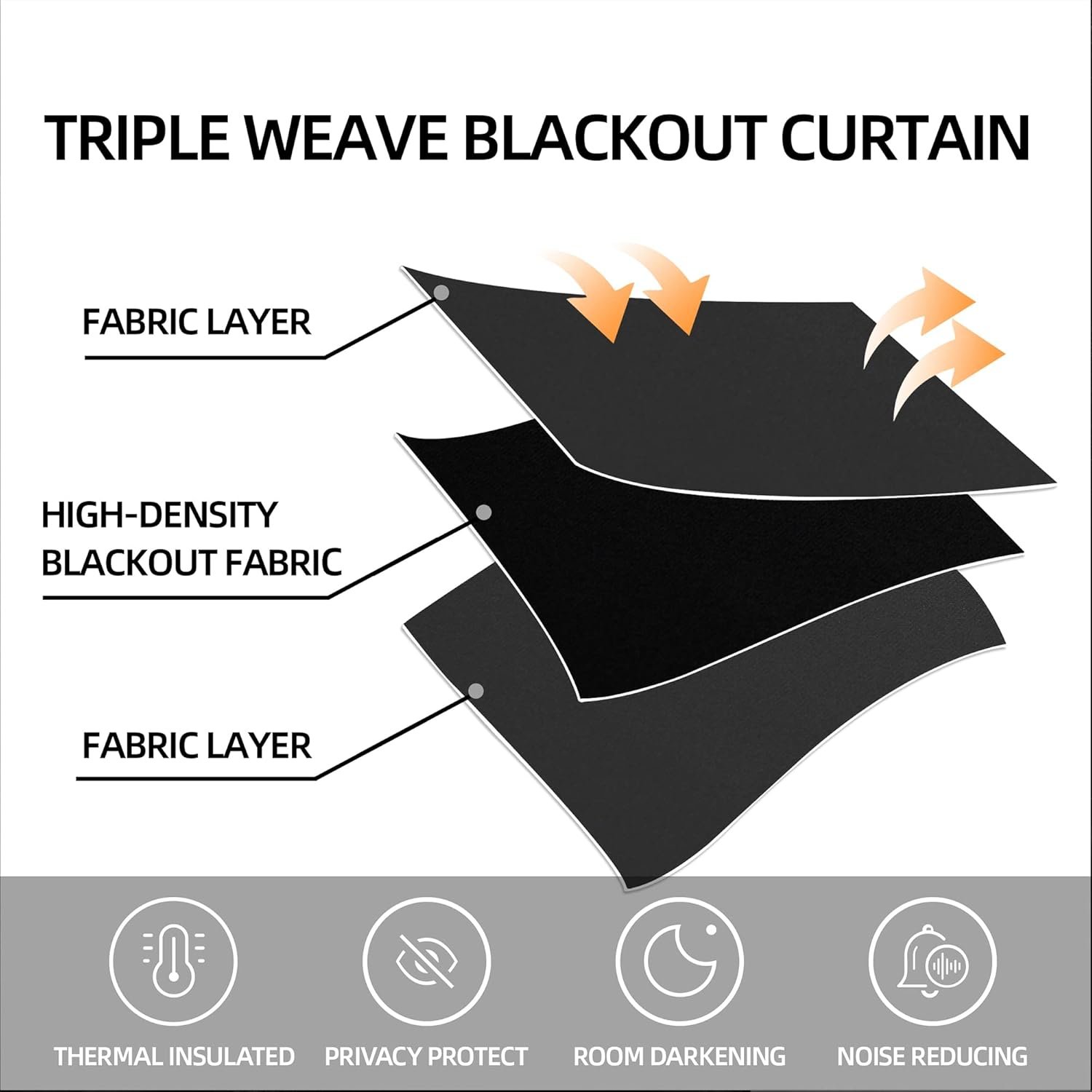 SUN BLOCKING & PRIVACY PROTECTION: These blackout curtains made of three-layer innovative textured fabric, durable, smooth and can block out 85% -95% light and UV rays, effectively reduce the noise and protect your sleep health and privacy(Darker colors are better)