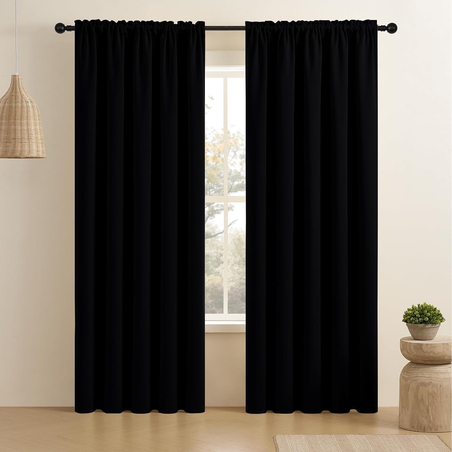 CUCRAF Black Blackout Curtains 84 inch Length 2 Panels Set, Rod Pocket Room Darkening Drapes for Bedroom Living Room, Insulated Thermal Light Blocking Window Curtain (W52 x L84 Inch)