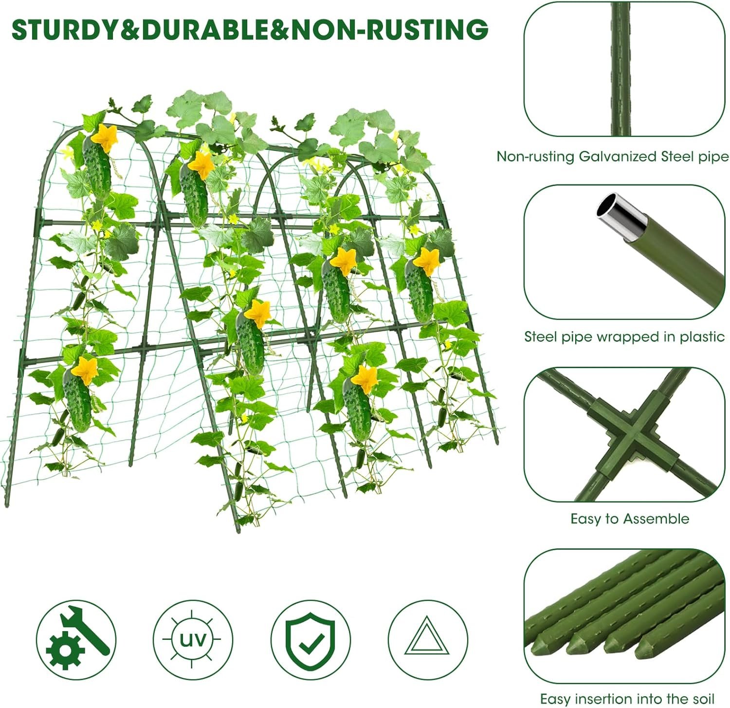 【Widely Application】Cucumber trellis for the garden provides support for vegetables such as cucumbers, peas, beans, tomatoes, flowers, pumpkin, melon, beans, and other liana crops.