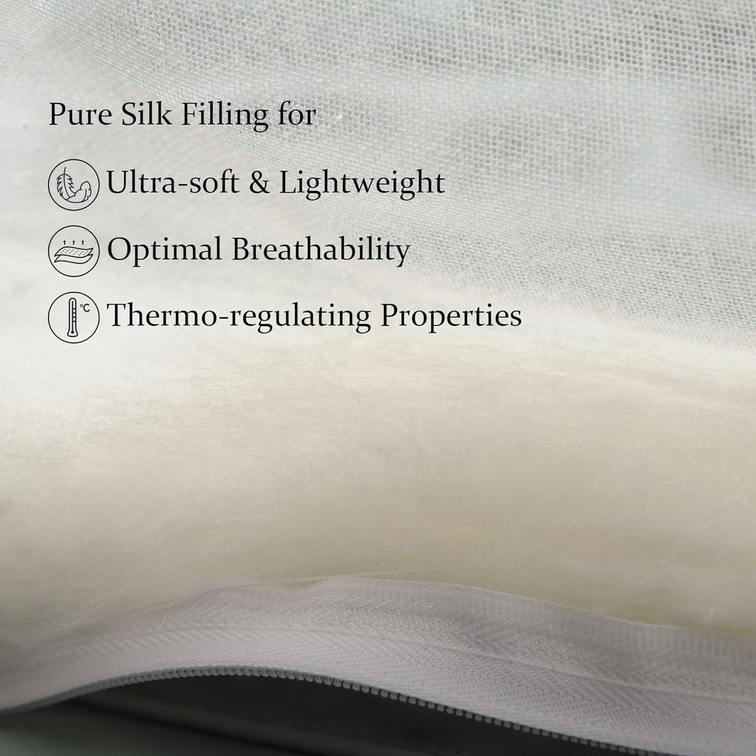 SILK FILLING: 100% Long-Strand Silk. Silk is a protein-based fiber, it contains natural nutrients beneficial to your skin and health. The silk filling is hand-pulled in Chinese traditional techniques layer by layer, it is soft, lightweighted & breathable, it helps to maintain a more stable temperature throughout the night. It offers cosiness, warmth without feeling heavy or bulky. Also, silk is a flame retardant material, which is difficult to ignite and may self-extinguish.