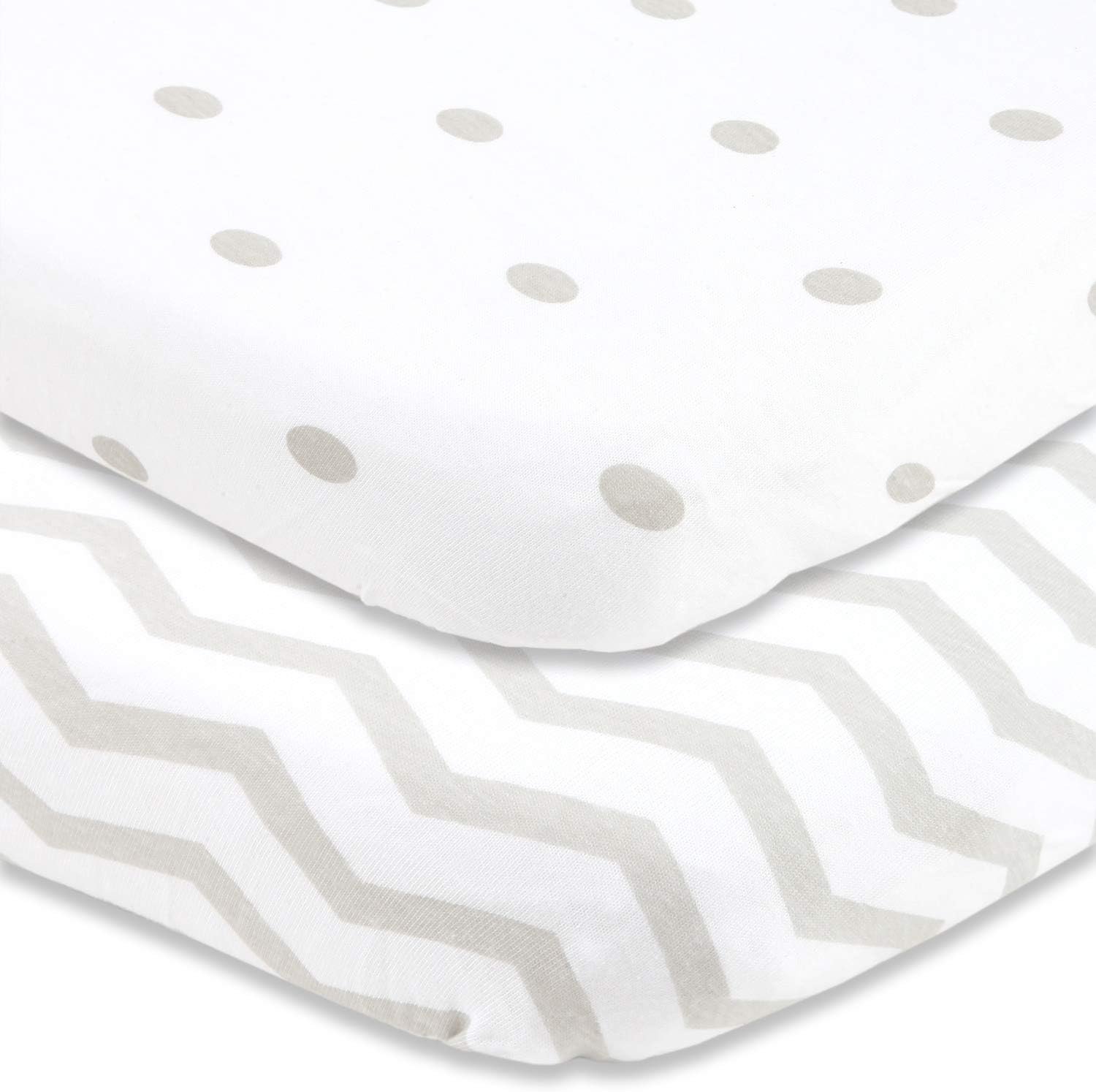 Cuddly Cubs Pack and Play Sheets Fitted – for Graco Pack n Play Playard – 2 Pack – Snuggly Soft Jersey Cotton Mini Crib Mattress Sheets Set for Baby Boy, Girl – Grey Polka Dots, Chevron