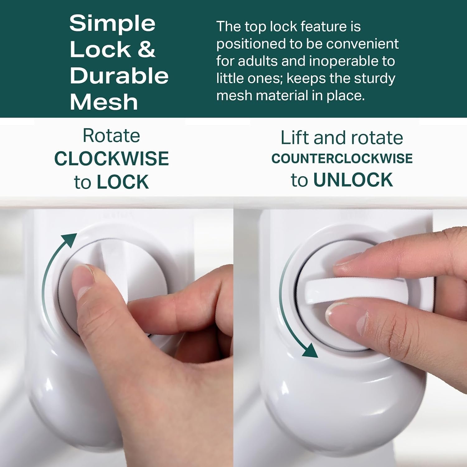 Safety Locking: The easy-to-use knob allows adults to open and close the gate with one hand, while the secure lock prevents curious toddlers and pets from escaping
