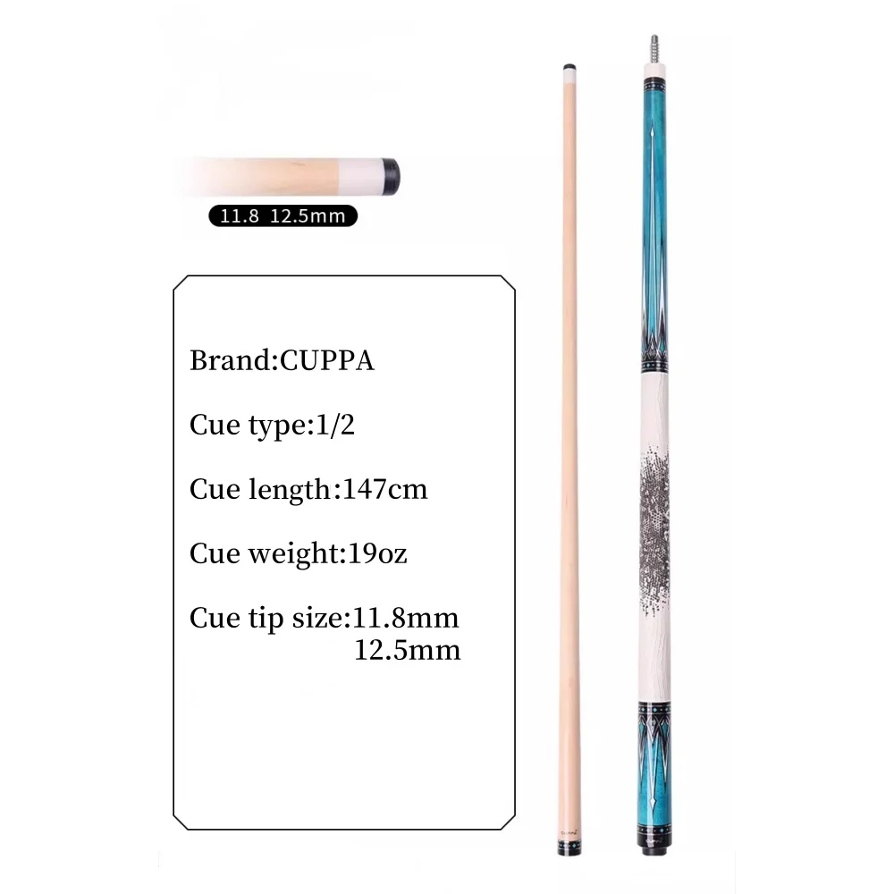Cuppa 58″ Blue Dawn Style Pro-Taper Maple Billiard Pool Cue Stick 11.8mm / 12.5mm