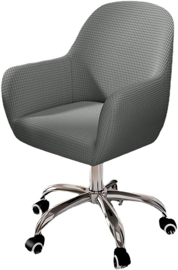 Curved Back Dining Chair Covers with Armrest, Swivel Armchair Cover Protector, Office Desk Chair Slipcovers, for Living Room Bedroom Home Decor,Dark Gray,1PC