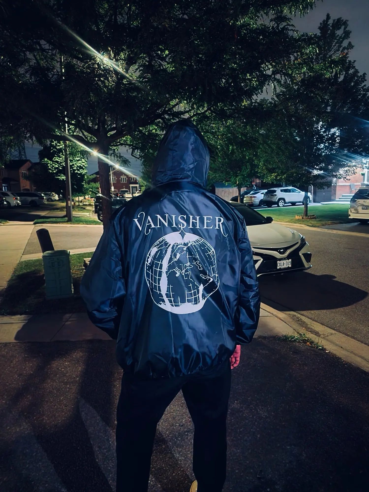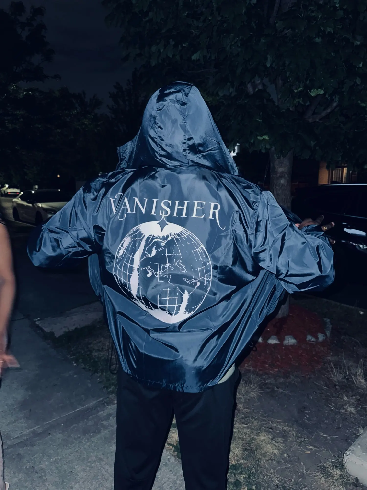 Stream vanisher by quadeca ! !! Anyway the jacket is sick. Message the seller what designs you want and send the pics to their email address. If outside east asia buy at least 4 sizes up. As a canadian large i bought a 7x to be oversized and it looks great.