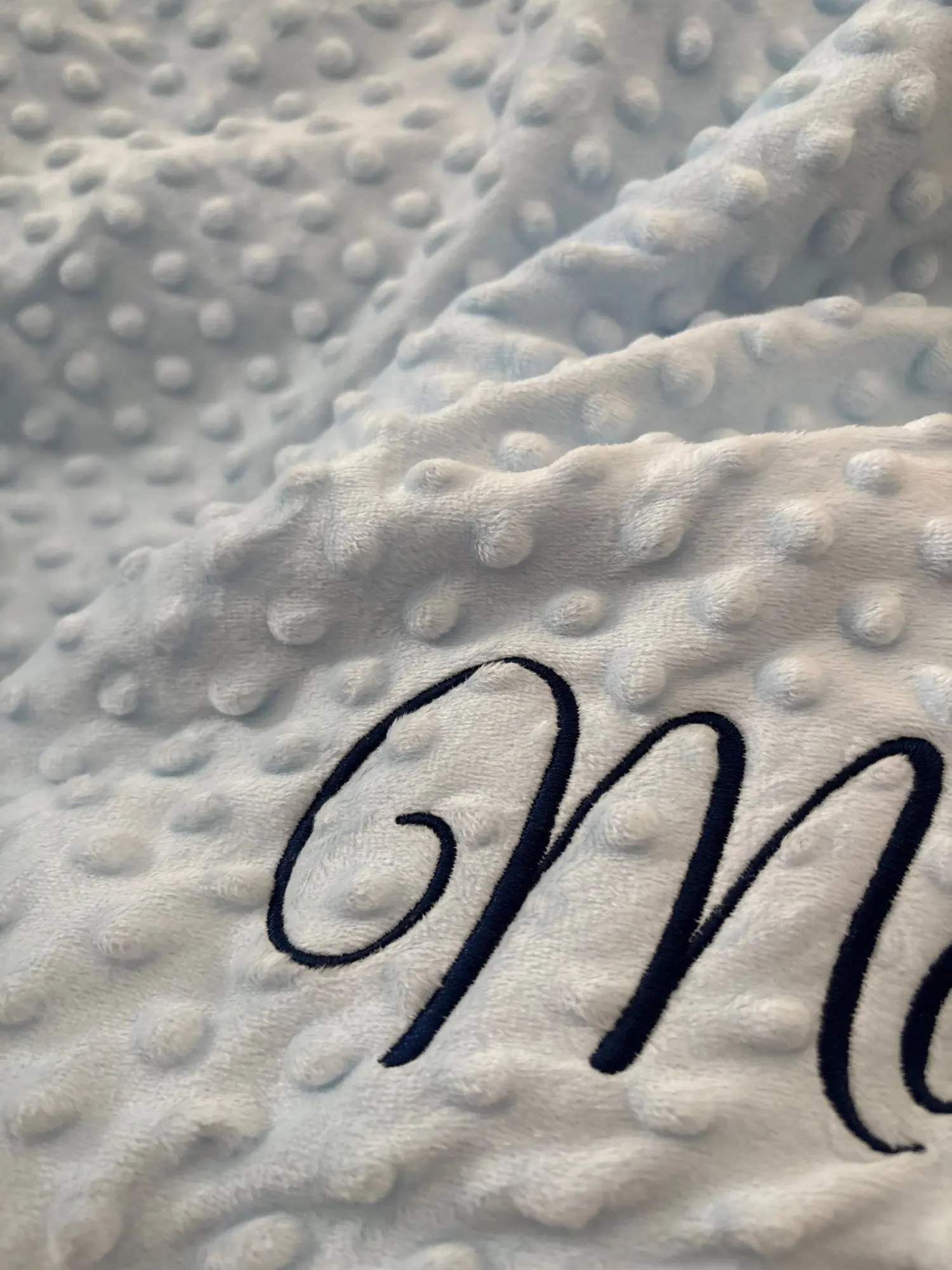 Description: baby name personalised embroidered on blanket.