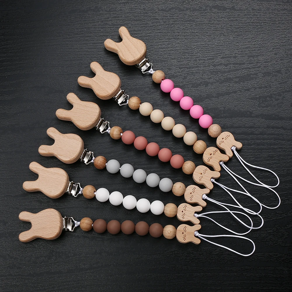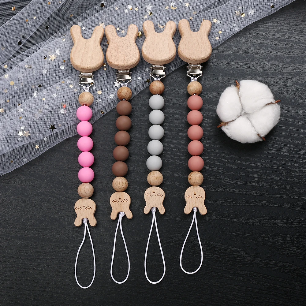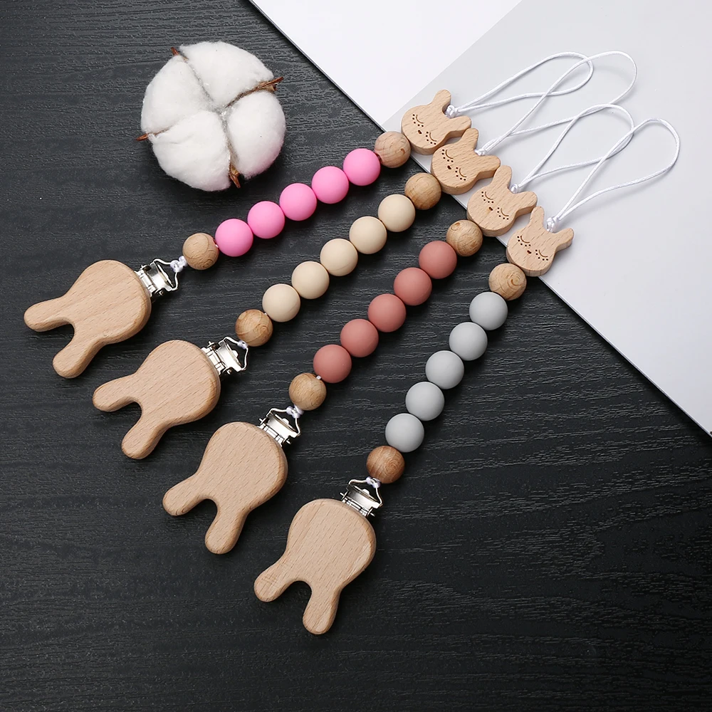 Custom Name Wooden Pacifier Clips Silicone Bead Personalized Dummy Nipple Holder Guard Baby Teether Pendant Gift