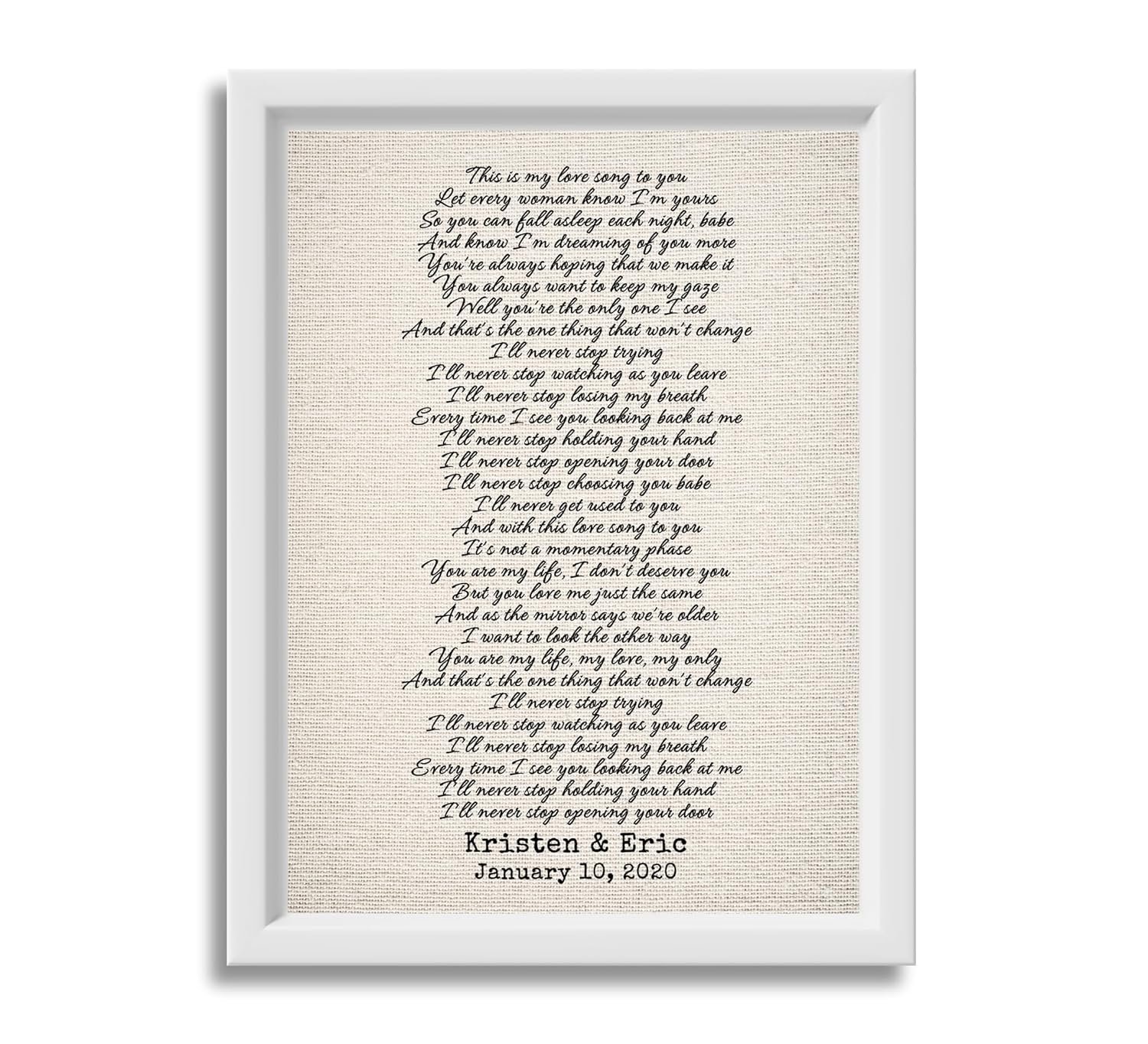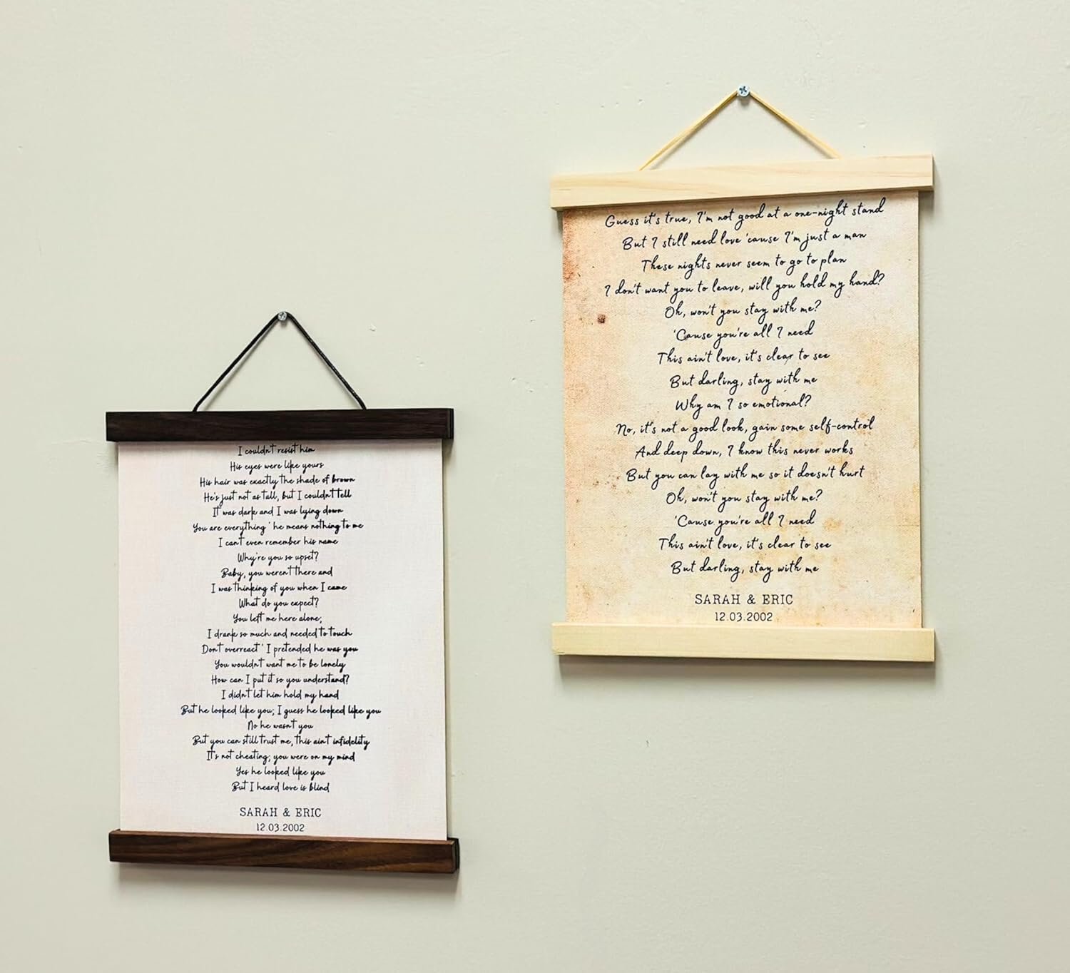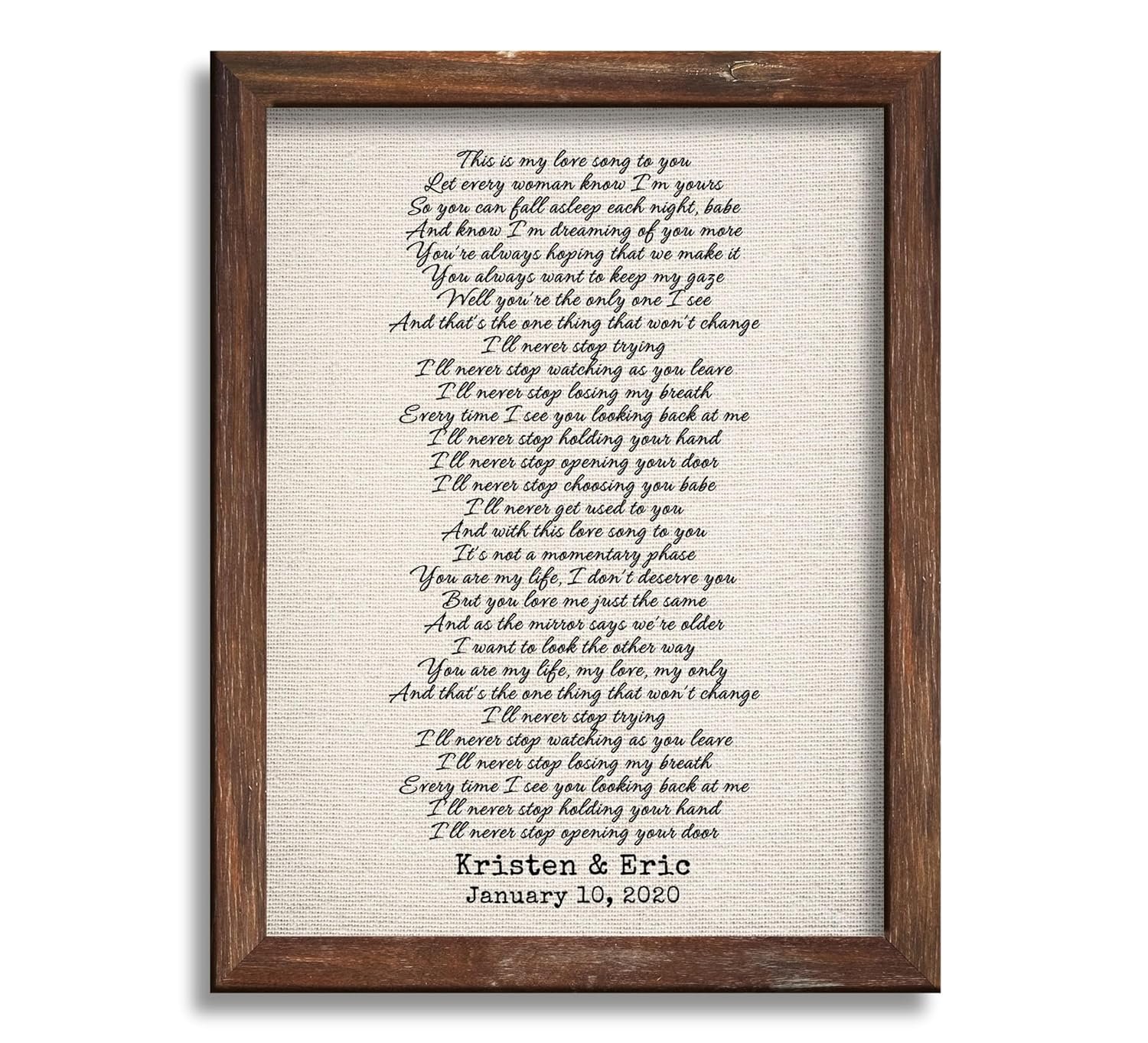 Custom Song Lyrics Canvas – Romantic Music Verses Printed on Cotton Sheet, Names and Special Date Canvas with Frame, Custom Memorial Wooden Framed Gift (Song Lyrics)