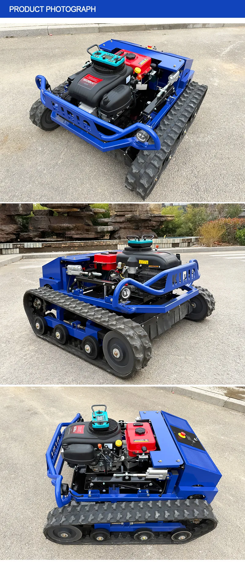 Customized CE EPA Approved All Terrain Robot Lawn Mower 22HP Industrial Grade 4-stroke 24V Remote Control Agriculture Rubber Tra
