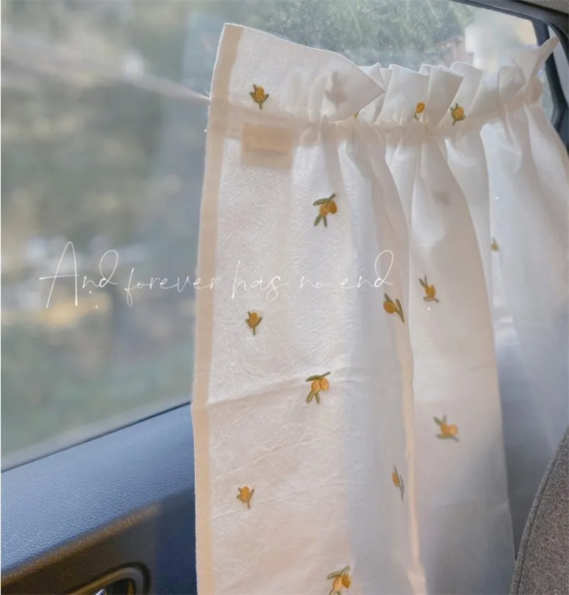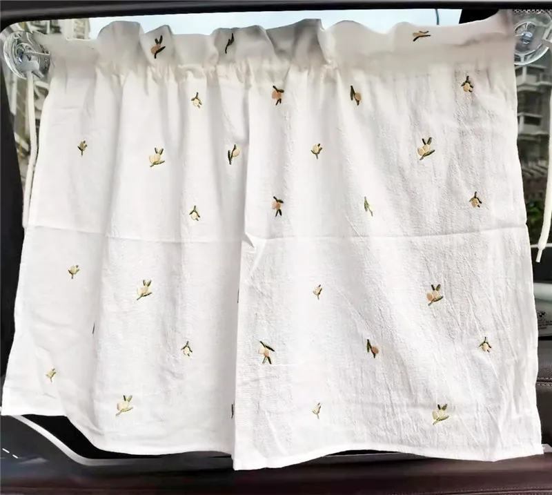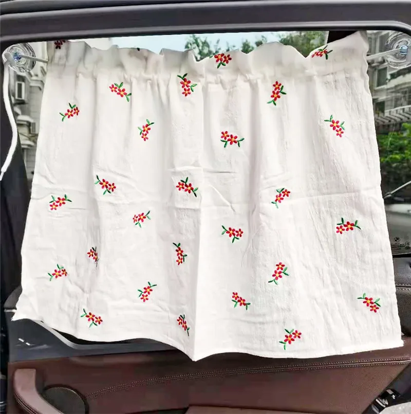 Cute Baby Car Curtain Cotton Sunscreen Cloth Embroidery Sunshade Children Sun Protection Window Curtain UV Protection for Kids