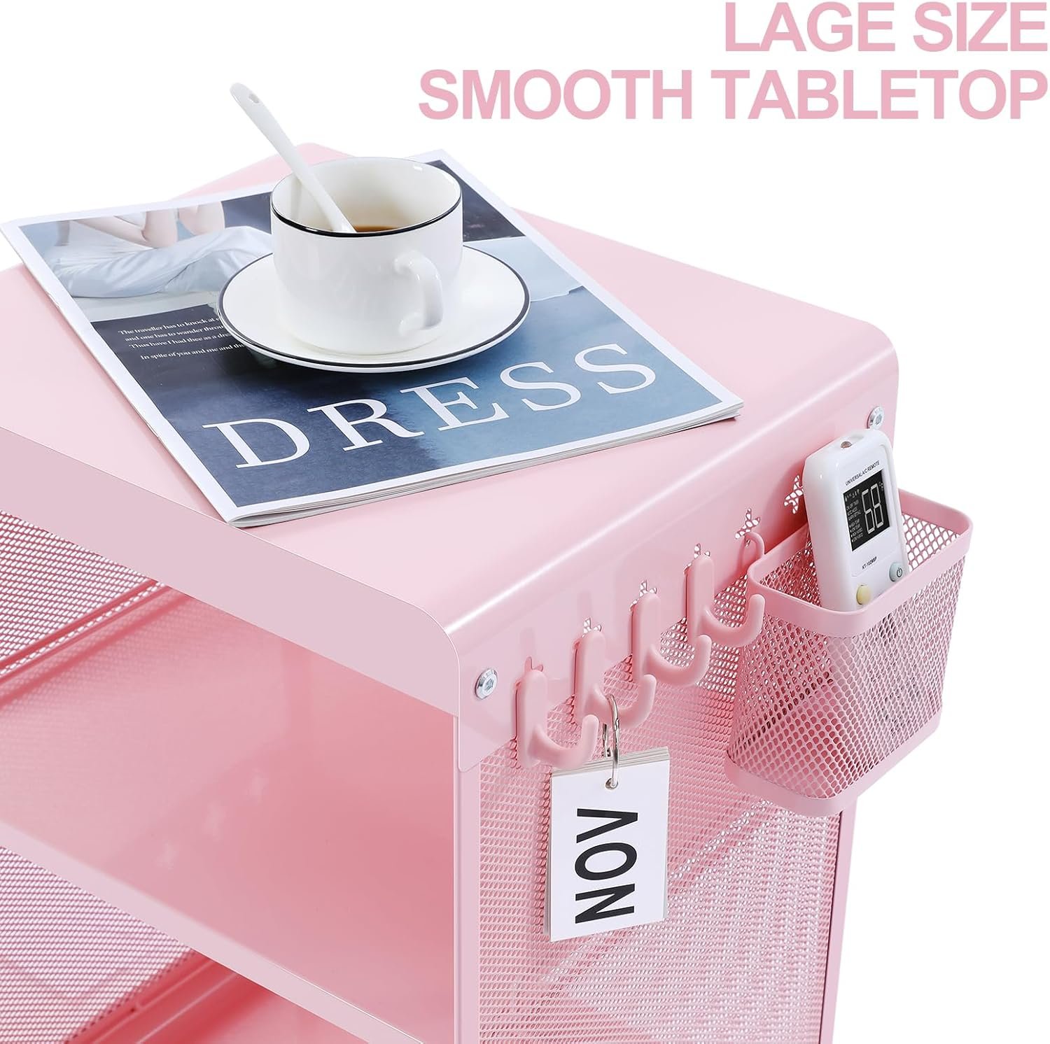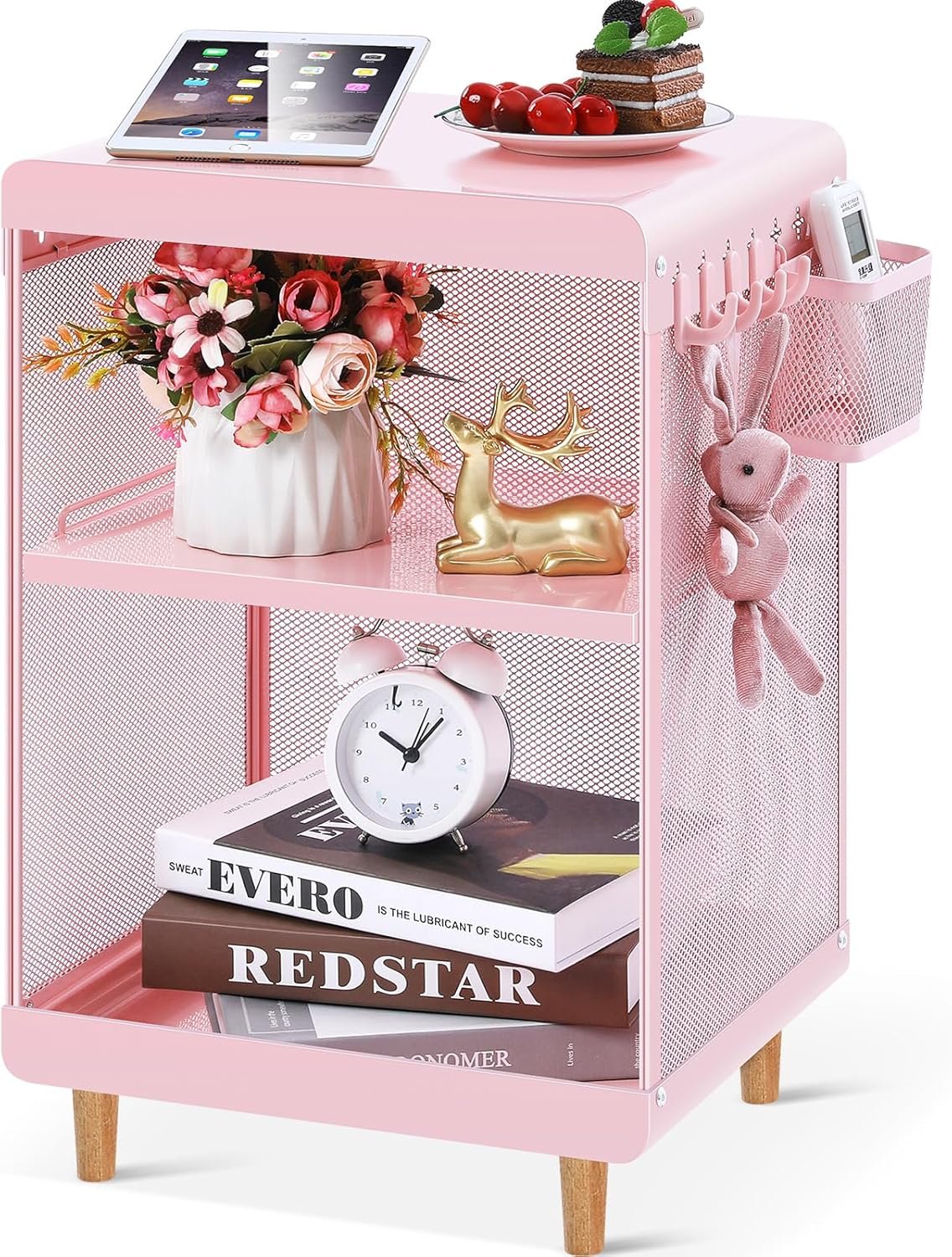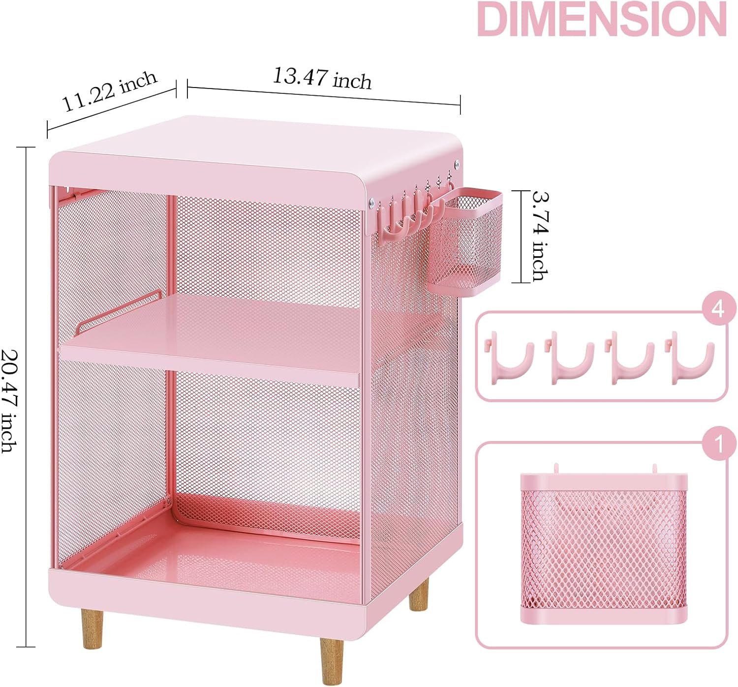 Cute Bedside Nightstand Table, Girls Metal Side Table, Kid End Table with Storage for Living Room Bedroom Kid’s Room Dorm Office (Classic Pink)