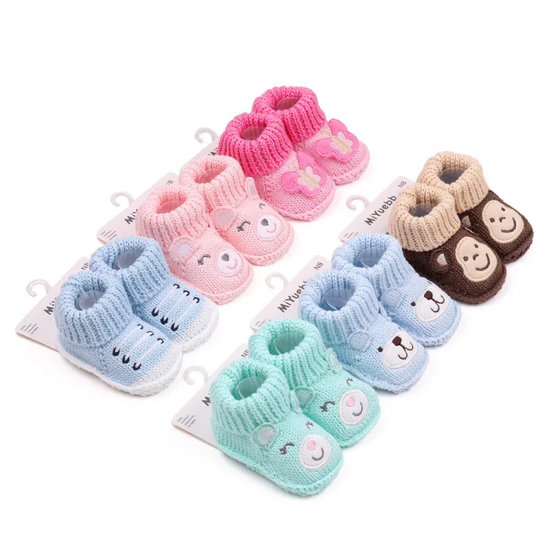 Cute Cartoon Knitting Crochet Baby Booties Newborn Socks Handmade Shoes Infant Warm First Walkers