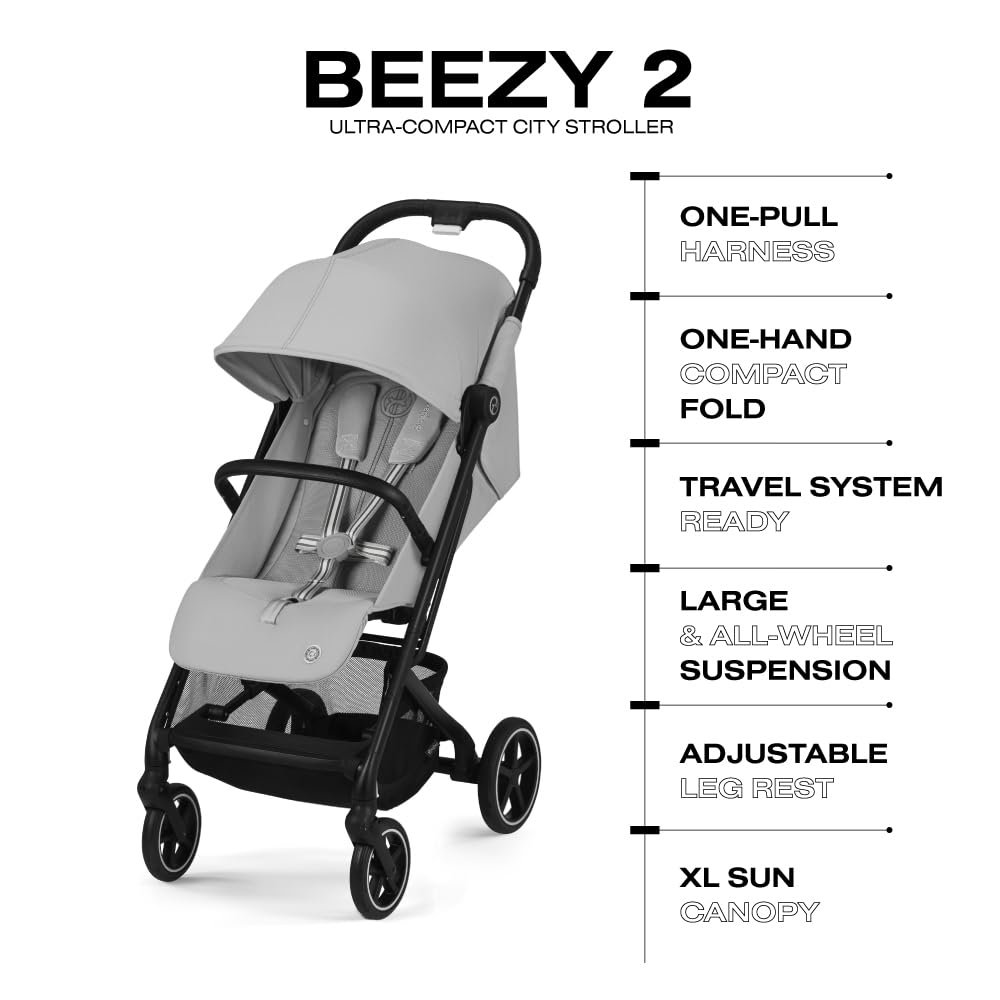 The CYBEX Beezy is a compact city stroller with full-size features. The perfect second stroller for traveling with baby, you can attach any CYBEX infant car seat to create a convenient travel system. The Beezy can easily fold into a compact, self-standing package for convenient storage. Made for parents on the go, the Beezy makes it a breeze to keep your child comfortable