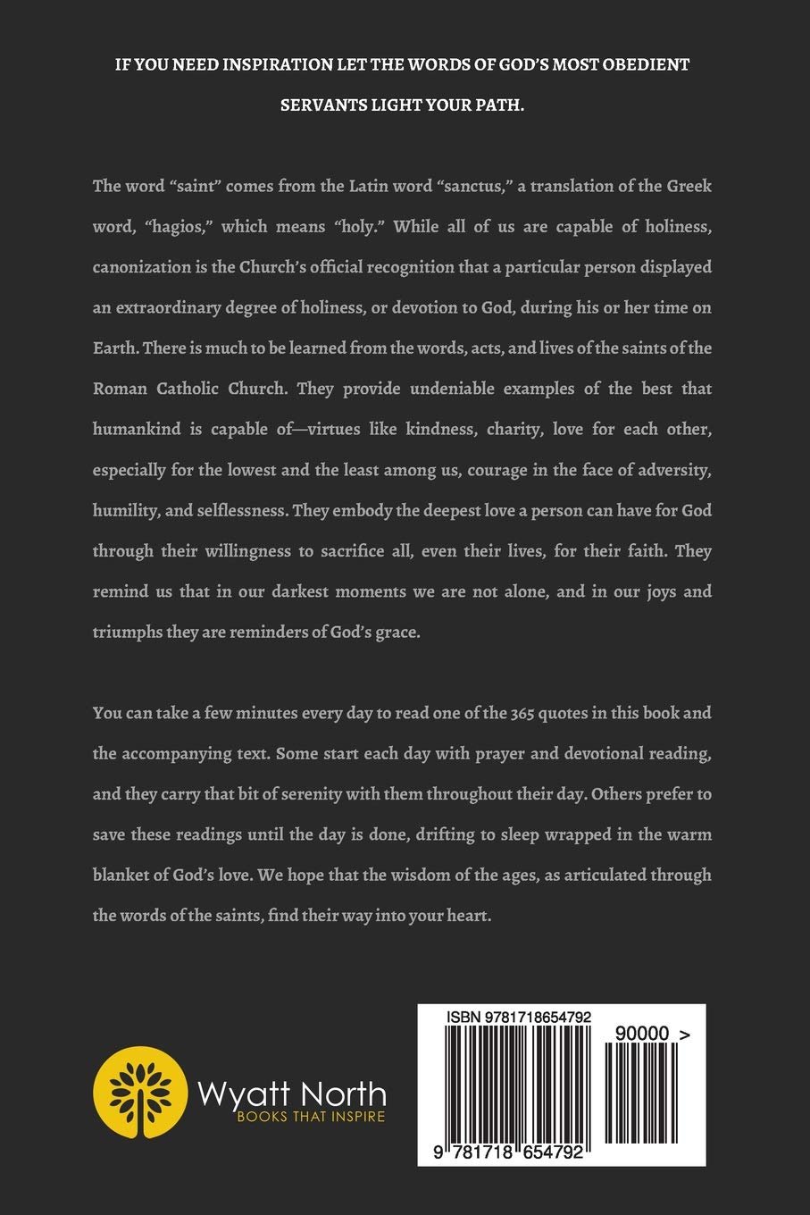 If you need inspiration let the words of God’s most obedient servants light your path. The word “saint” comes from the Latin word “sanctus,” a translation of the Greek word, “hagios,” which means “holy.” While all of us are capable of holiness, canonization is the Church’s official recognition that a particular person displayed an extraordinary degree of holiness, or devotion to God, during his or her time on Earth. There is much to be learned from the words, acts, and lives of the saints of the Roman Catholic Church. They provide undeniable examples of the best that humankind is capable of—virtues like kindness, charity, love for each other, especially for the lowest and the least among us, courage in the face of adversity, humility, and selflessness. They embody the deepest love a person can have for God through their willingness to sacrifice all, even their lives, for their faith. They remind us that in our darkest moments we are not alone, and in our joys and triumphs they are reminders of God’s grace. You can take a few minutes every day to read one of the 365 quotes in this book and the accompanying text. Some start each day with prayer and devotional reading, and they carry that bit of serenity with them throughout their day. Others prefer to save these readings until the day is done, drifting to sleep wrapped in the warm blanket of God’s love. We hope that the wisdom of the ages, as articulated through the words of the saints, find their way into your heart.