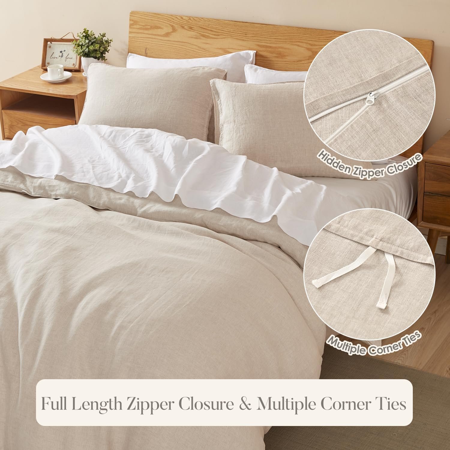 DAPU 100% Linen Duvet Cover Set 3PCs, Pure Natural French Flax Linen Duvet Cover King 90″x104″ with Corner Ties and Zipper Closure, Soft Breathable Durable for Hot Sleepers (Natural Linen, King)