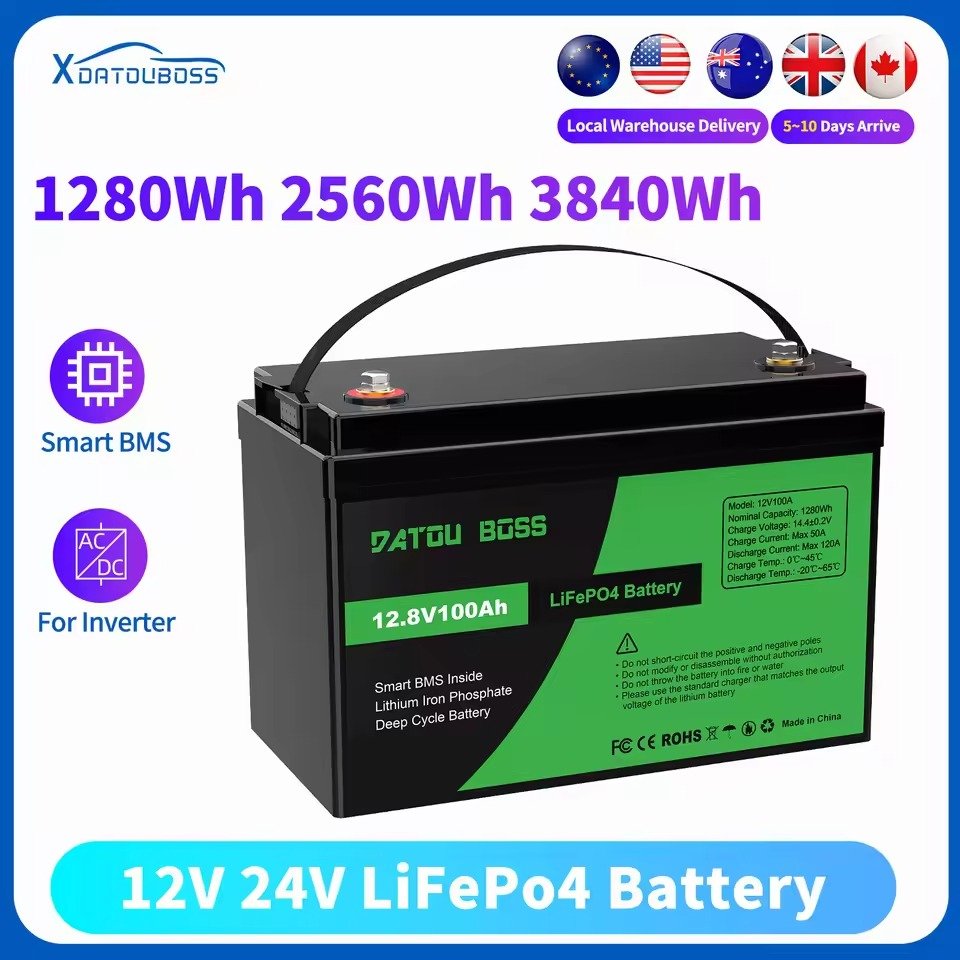 DATOUBOSS 100AH Lifepo4 Battery 12V 200AH 300Ah Lithium Iron Phosphate for Marine/RV/Golf Cart/Home Car Battery for Inverters