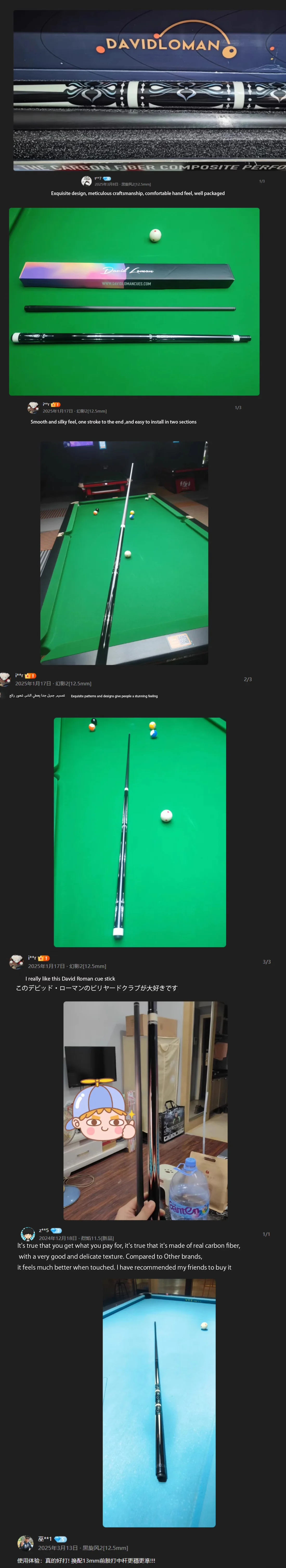 1 review for DAVID LOMAN Billiard Carbon Fiber Pool Cue Stick 58 inches,3/8 * 8-Pin Joint and 11.5mm/12.5mm Pen Tip,high qualit balliard play