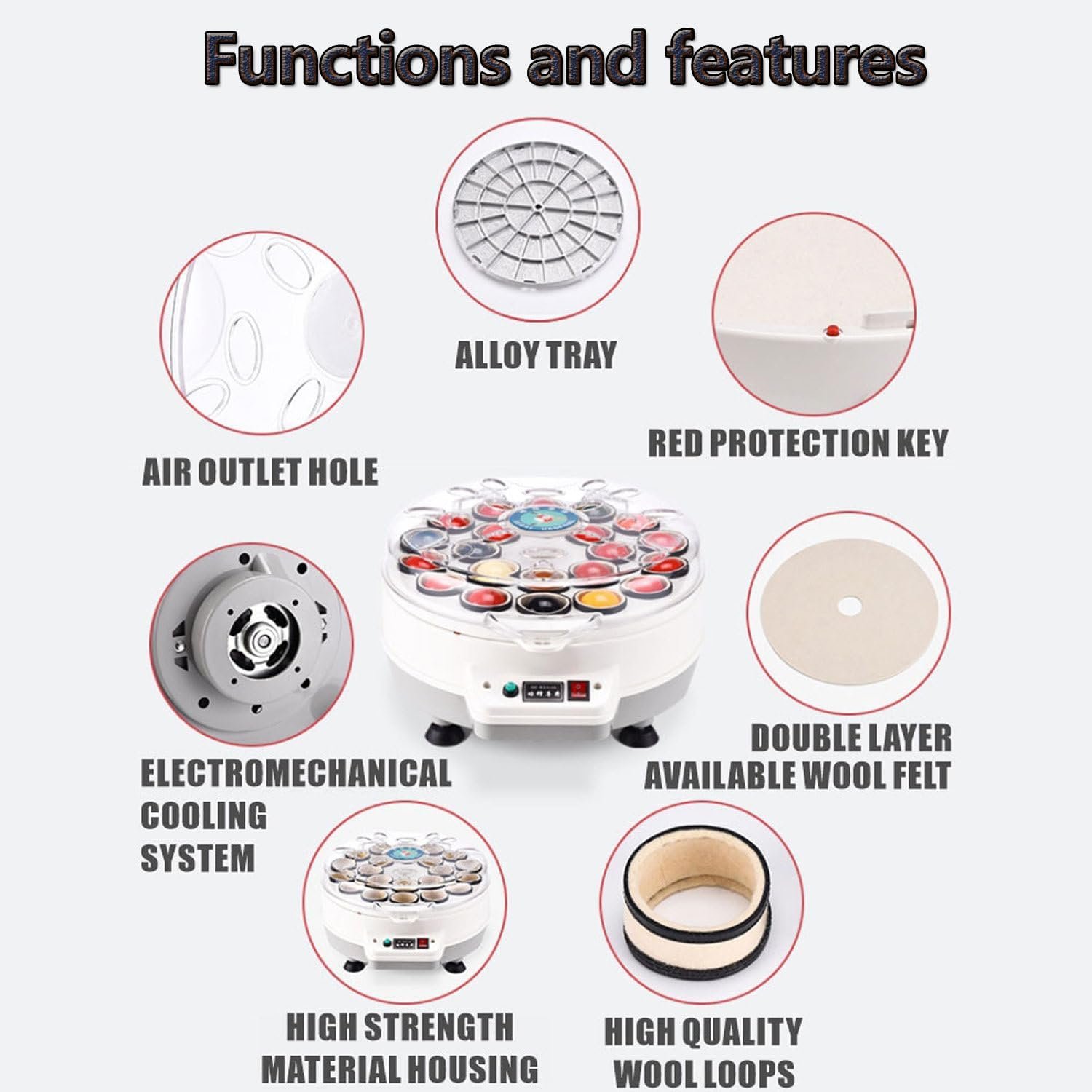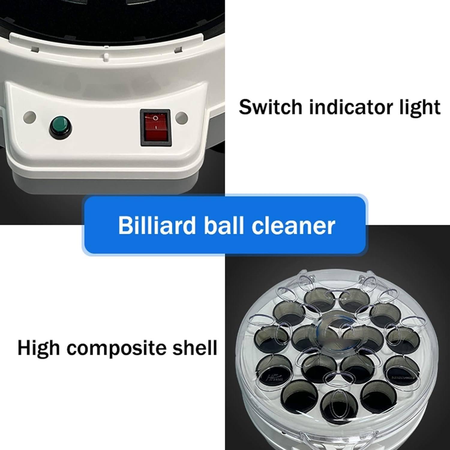✔【COOLING SYSTEM】 The snooker polishing machine is equipped with a high-quality motor. The 180W high-power motor is not only efficient in ball washing, but also has a professional cooling system built-in. Combined with the elliptical air outlet of the machine cover, it can quickly dissipate heat and extend the service life of the machine.