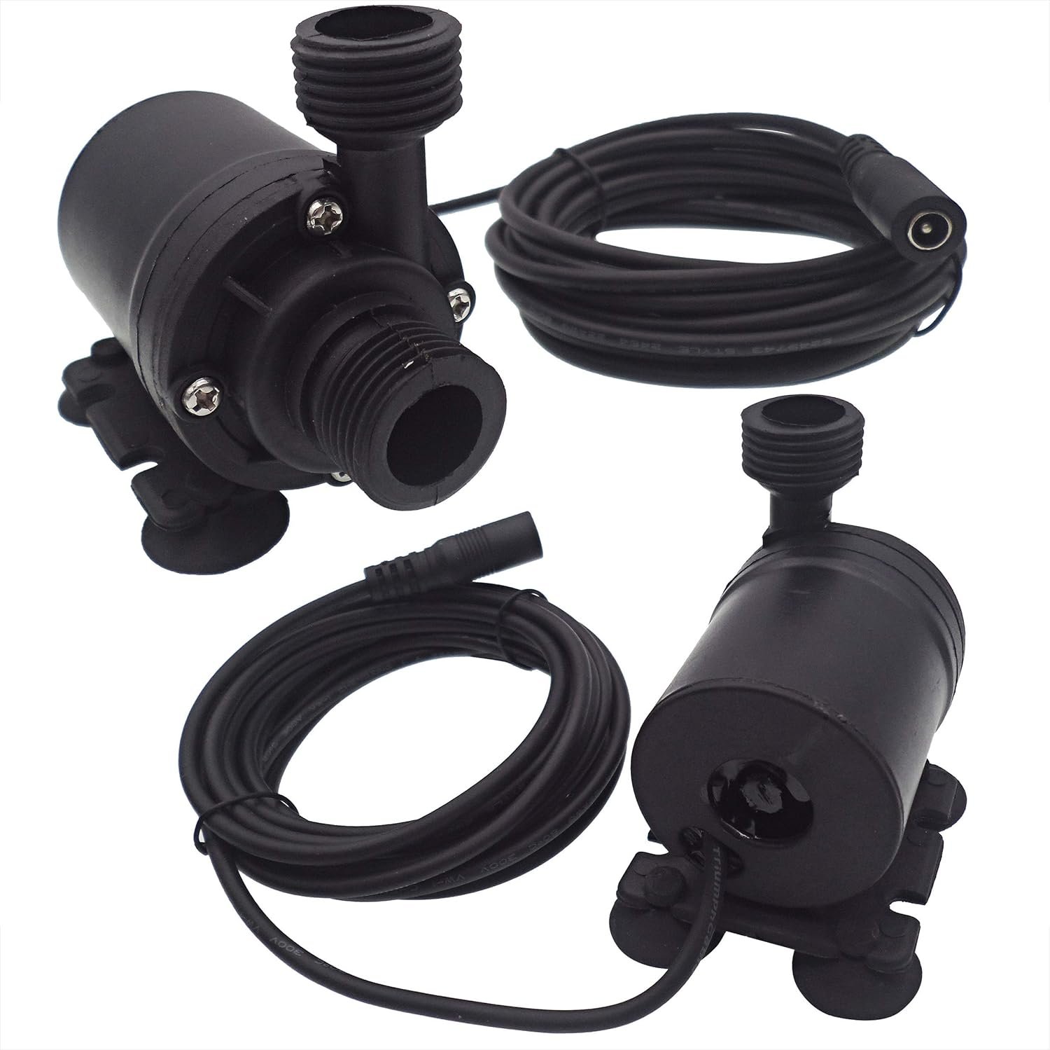 The point straight in line with the pump body is the water inlet, vertical to the pump body is water outlet. Entirely waterproof, super long working life (more than 30,000 hours). Brushless Motor, small size, high efficiency, low consumption, low noise (less than 35dB)