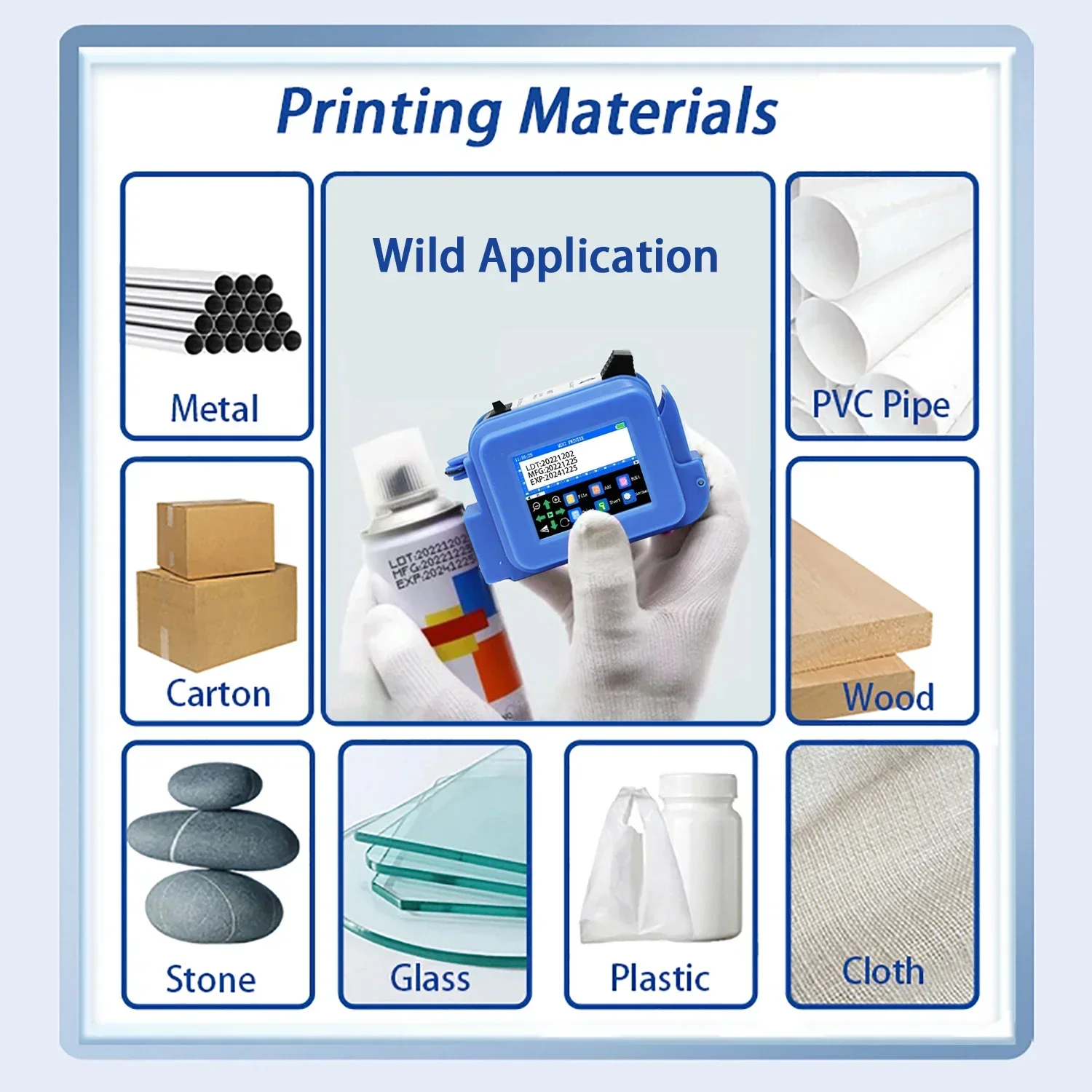 Printing Material: Wood, Carton, Pipe, Cable, Metal, Plastic, Uneven surface, etc.