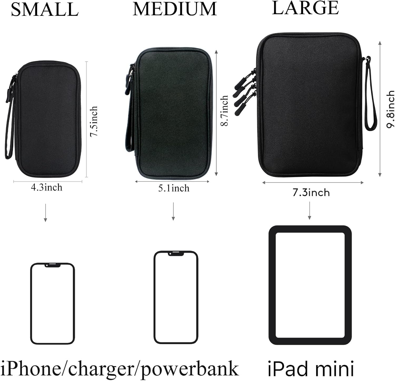 Lightweight: This electronics accessories carrying bag is compact & lightweight. It is about the size of your iPad mini, with dimension: 8.7 x 5.1 x 1.8 inch. It is only 136 grams/0.3 lbs, will be easy & convenient to use in daily life