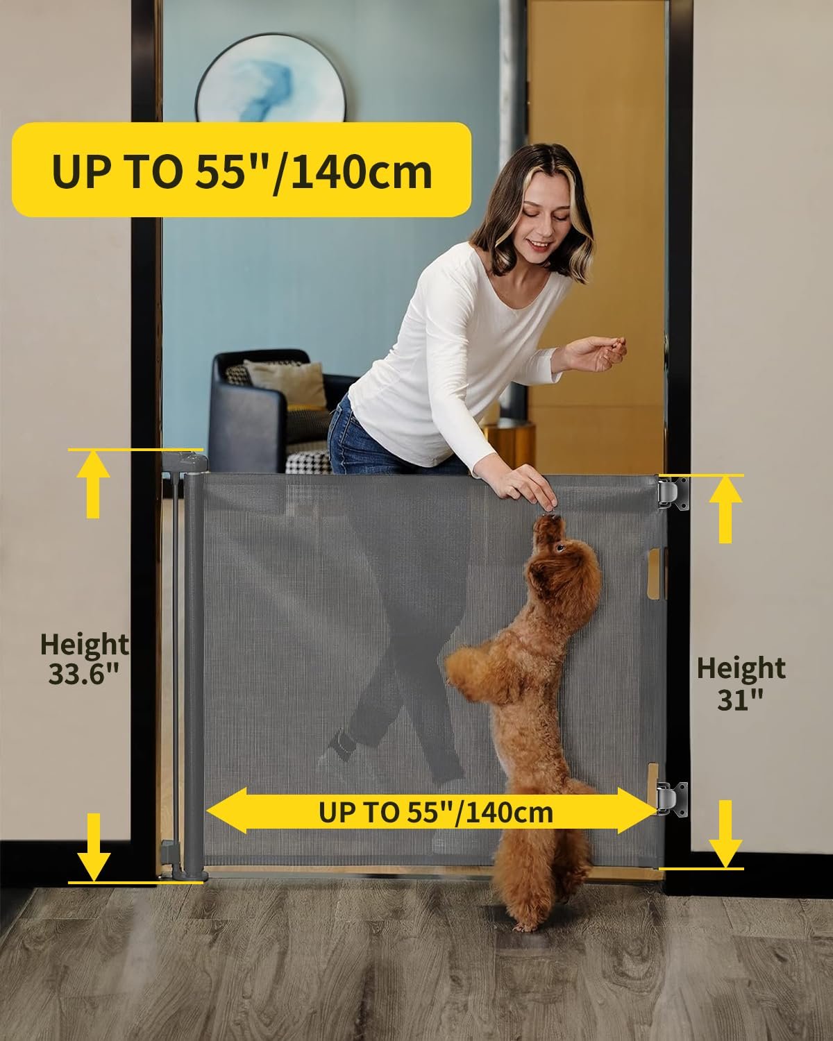dearlomum Retractable Baby Gate,Mesh Baby Gate or Mesh Dog Gate,33″ Tall,Extends up to 55″ Wide,Child Safety Gate for Doorways, Stairs, Hallways, Indoor/Outdoor(Grey,33″x55″