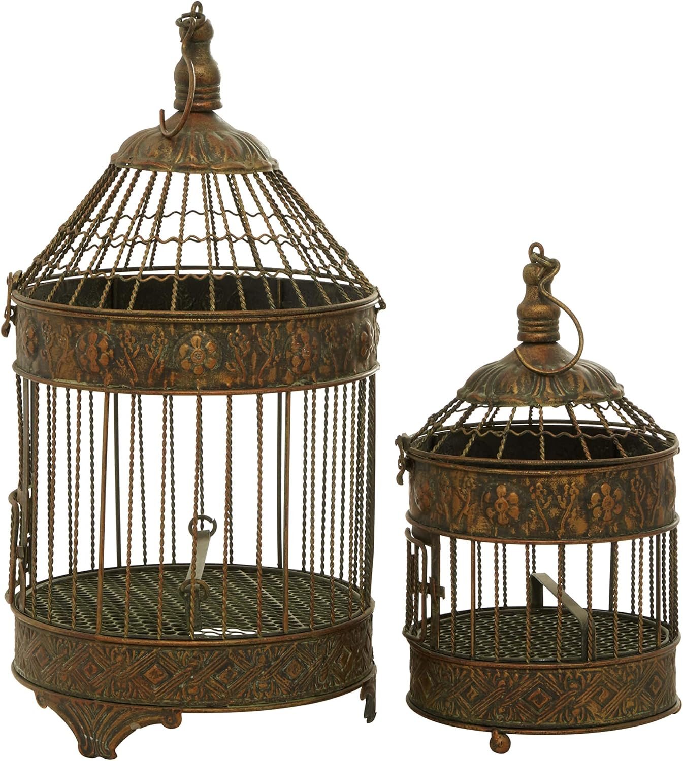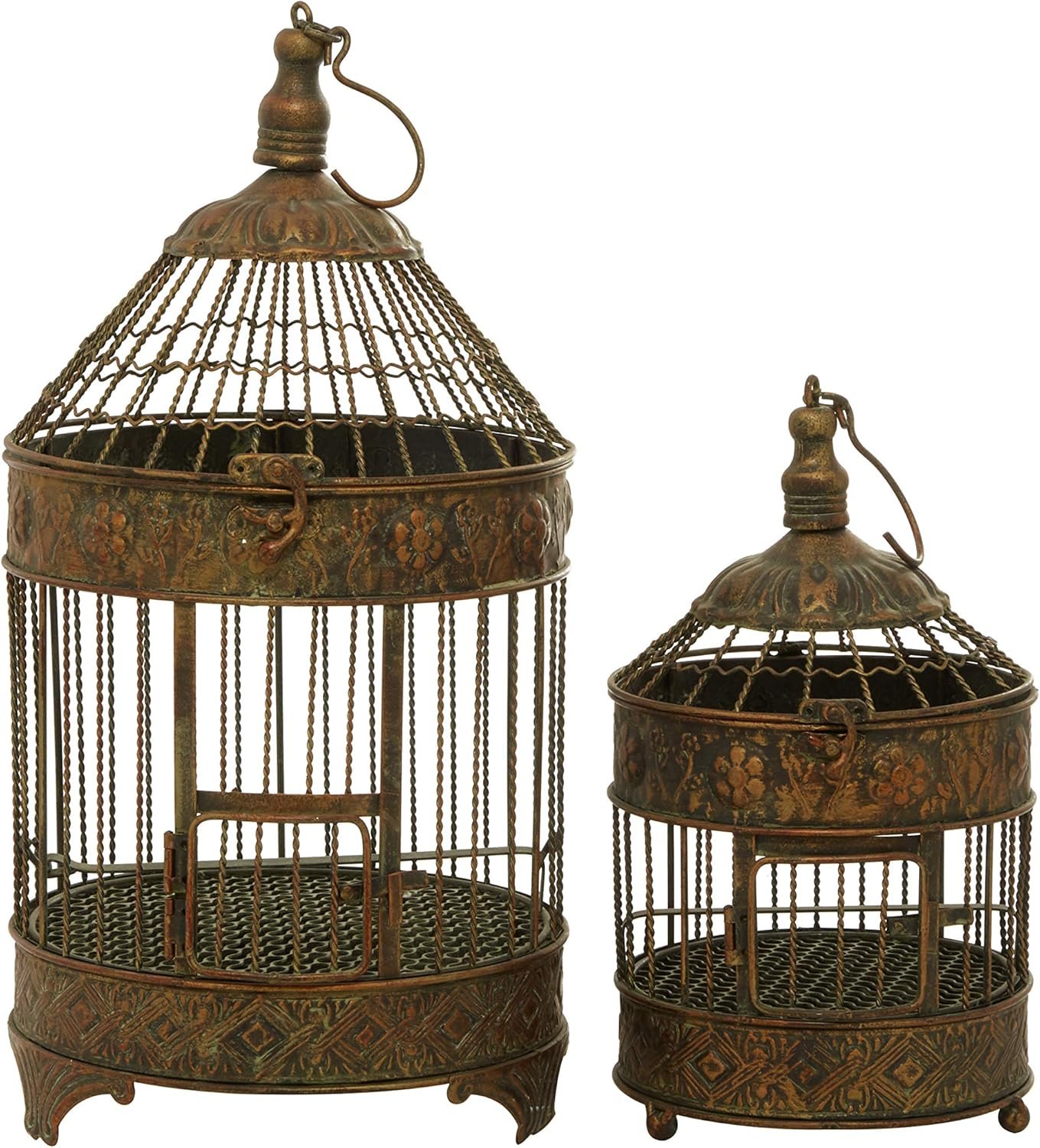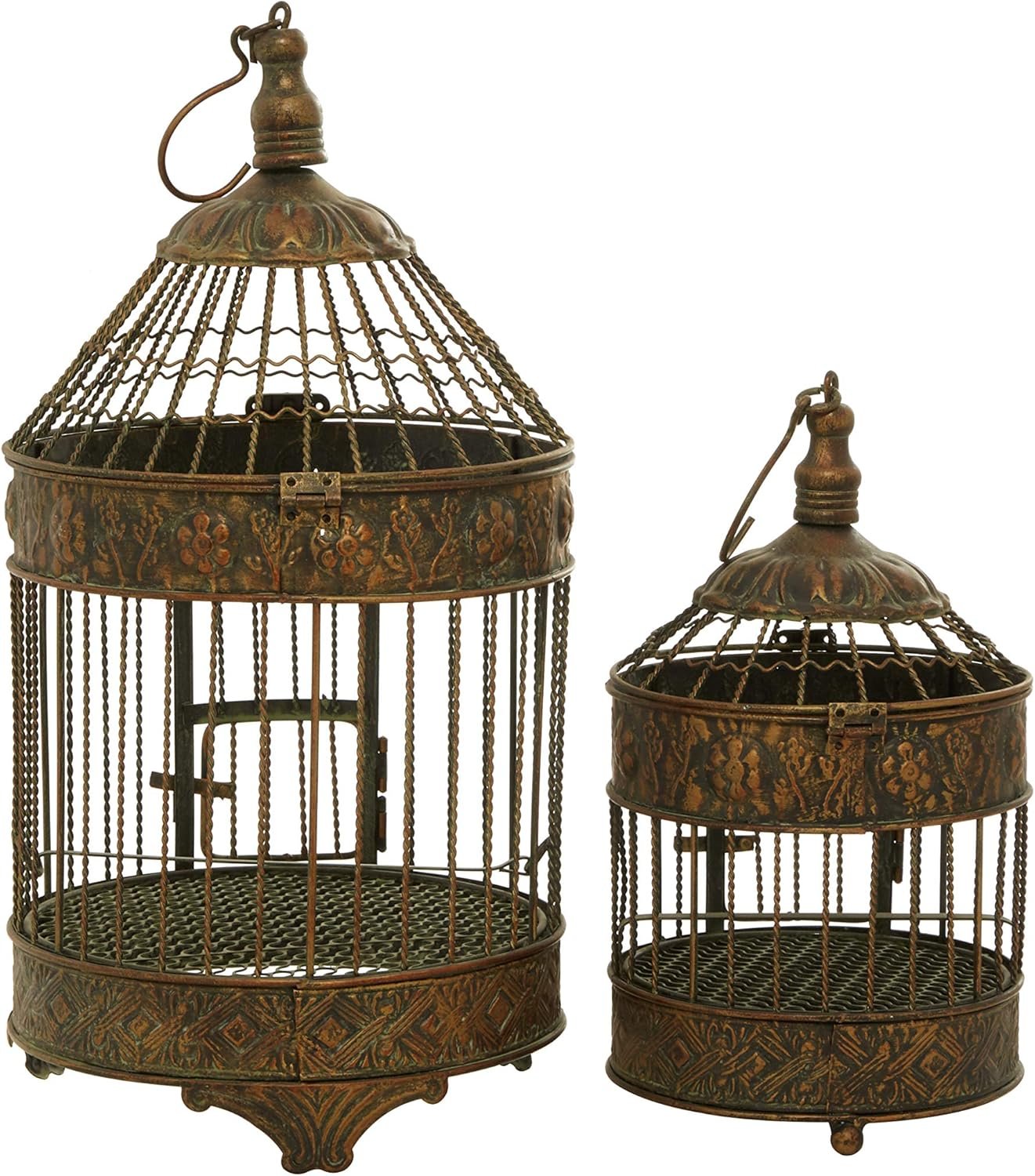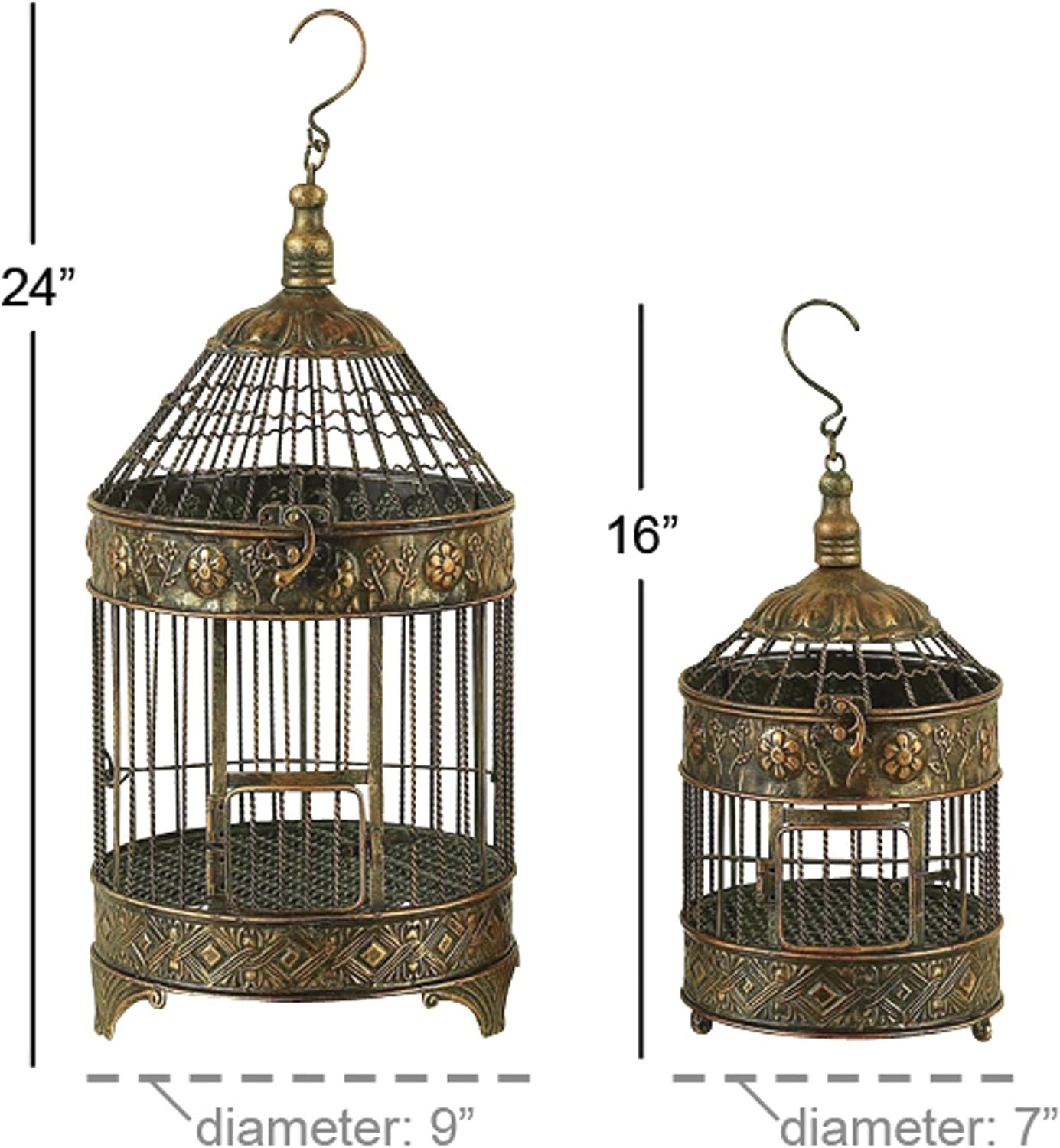 Jazz up vintage themed spaces with these charming home decor accent pieces that are ideal for both indoor and outdoor use. These bird cages look great on tables and ceilings, especially when filled with flowers, garland, or more. Arrange these birdcages as standalone or as a set that complements other metal home decors. This item ships in 1 carton. Suitable for indoor use only. This birdcage comes as a set of 2. Vintage style.