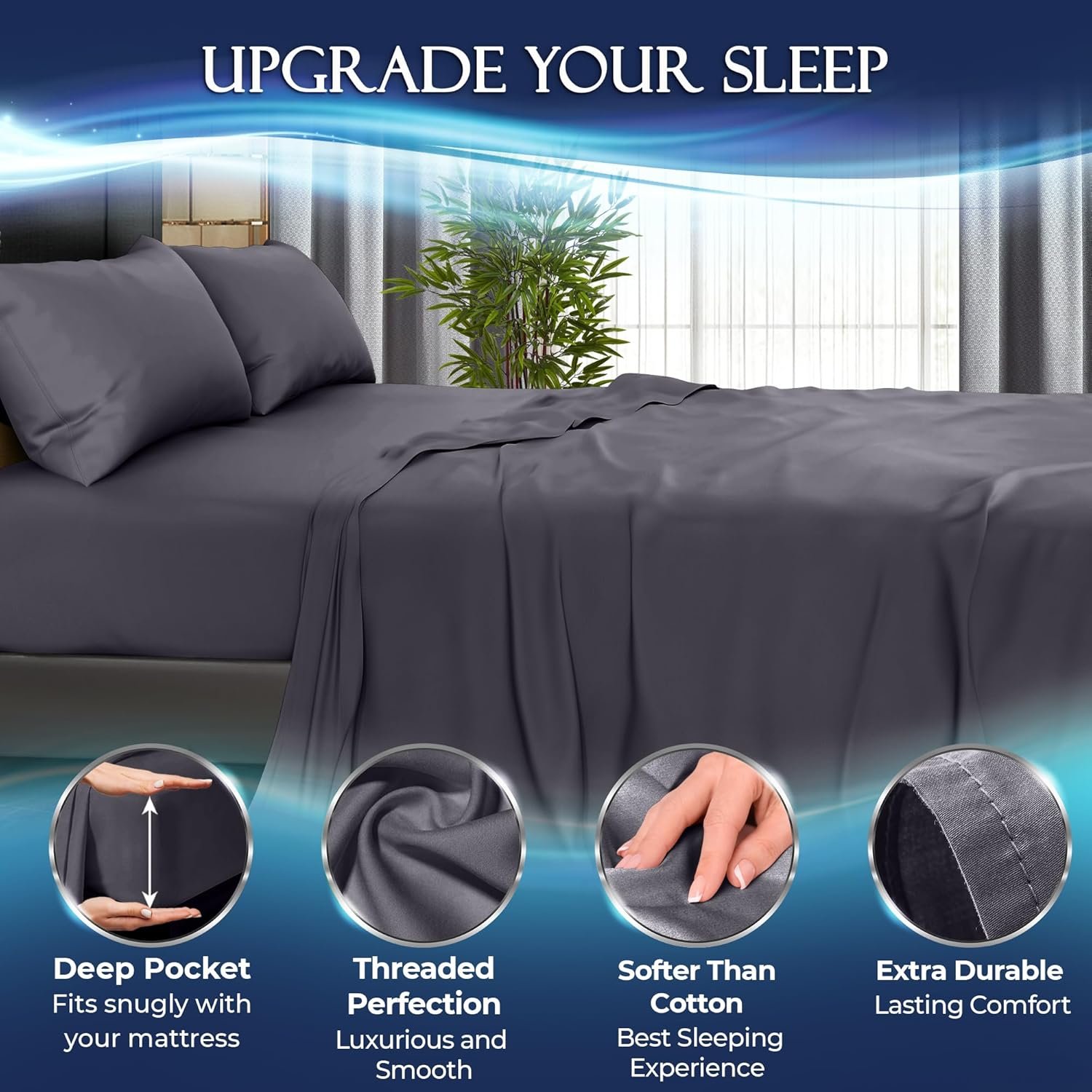 Unwind in pure luxury – indulge in comfort with our cooling sheets queen set. With enhanced BreezeWeave Blend technology, our queen sheets Bamboo Viscose Microfiber provide a touch for the best sleeping experience. Our soft sheets for queen bed ensure long-lasting durability and unmatched quality that will elevate your sleep