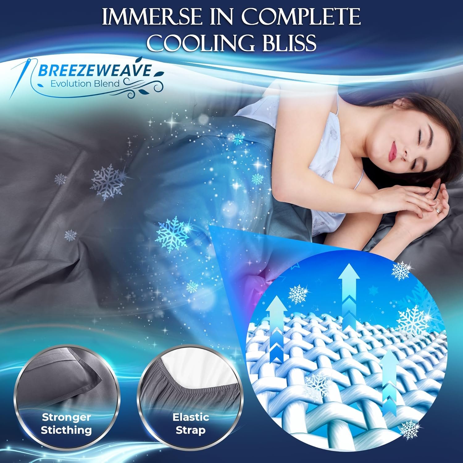 Unleash cool comfort – stay cool all night with our cooling sheets queen for hot sleepers. Our BreezeWeave cool sheets wick away moisture and enhance breathability. Transform hot nights into restful slumber and wake up refreshed and ready. Upgrade your sleep now with our cool sheets for queen size bed