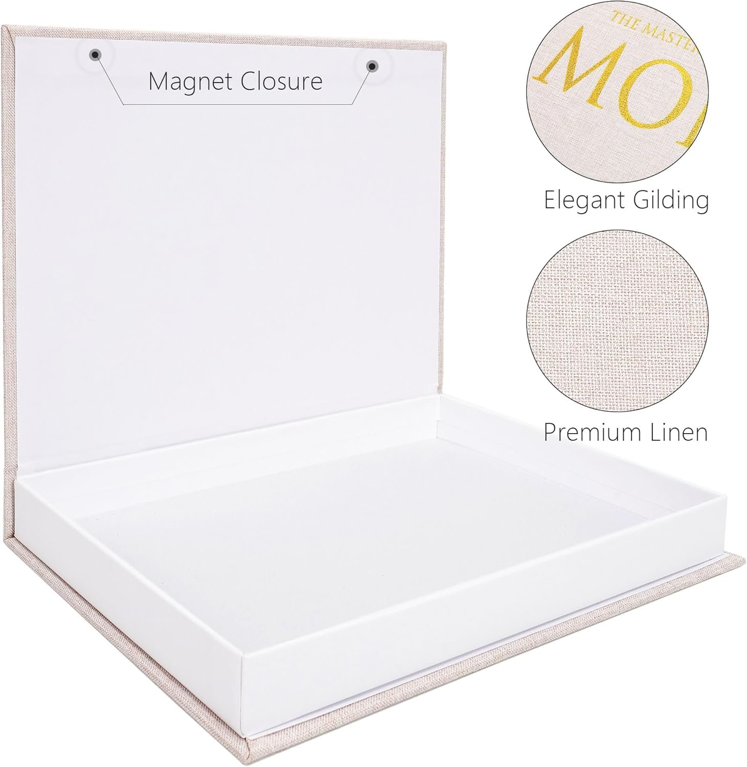 Premium LinenPremium Linen Premium Linen Magnet ClosureMagnet Closure Magnet Closure Elegant GildingElegant Gilding Elegant Gilding For Versatile StorageFor Versatile Storage For Versatile Storage