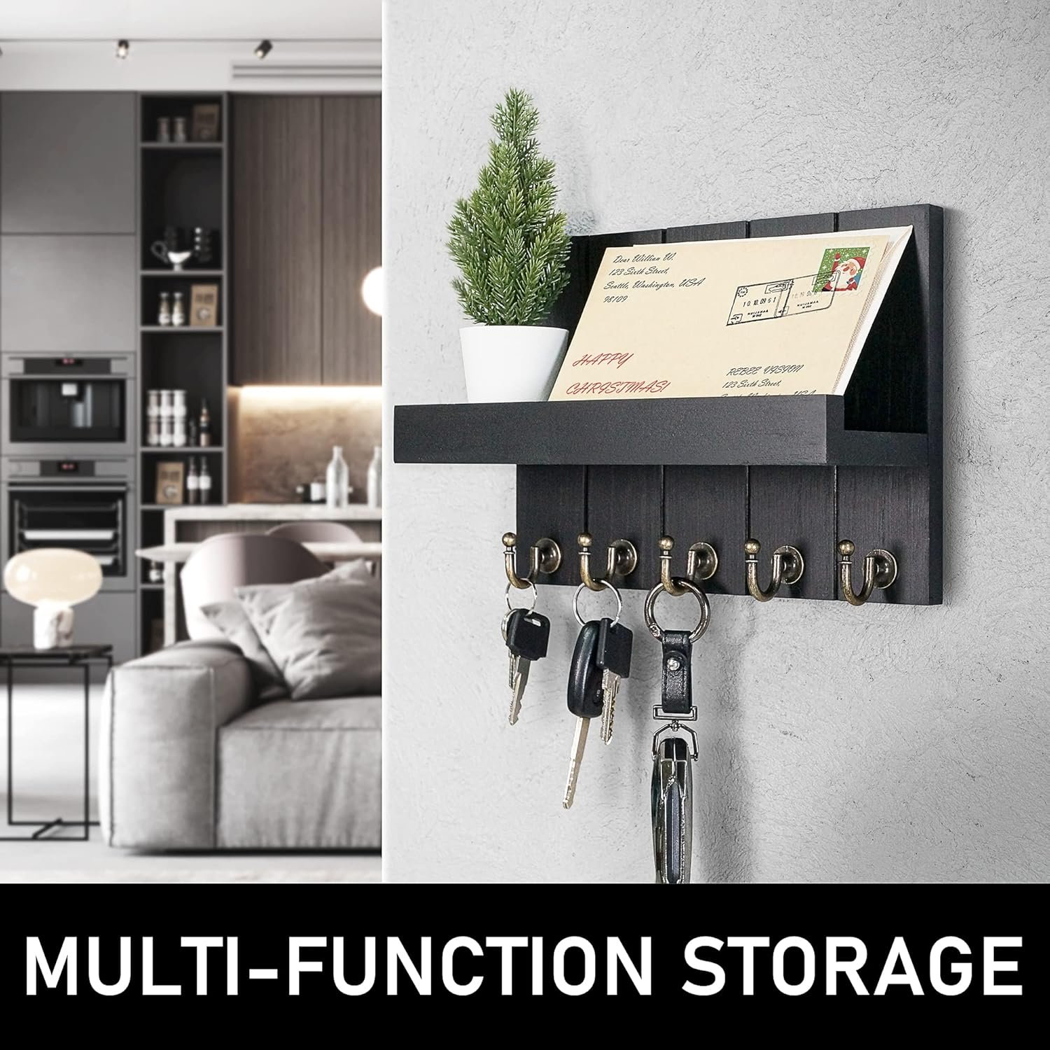 【ELEGANT HOME DECOR】 Black mail and key origanizer not only store small items but also help you find your keys and essentials faster on the way out the door. As an elegant home decoration, you can hang it in entrance, hallway, living room, kitchen, utility room, mudroom, garage, office, dormitorie, etc.