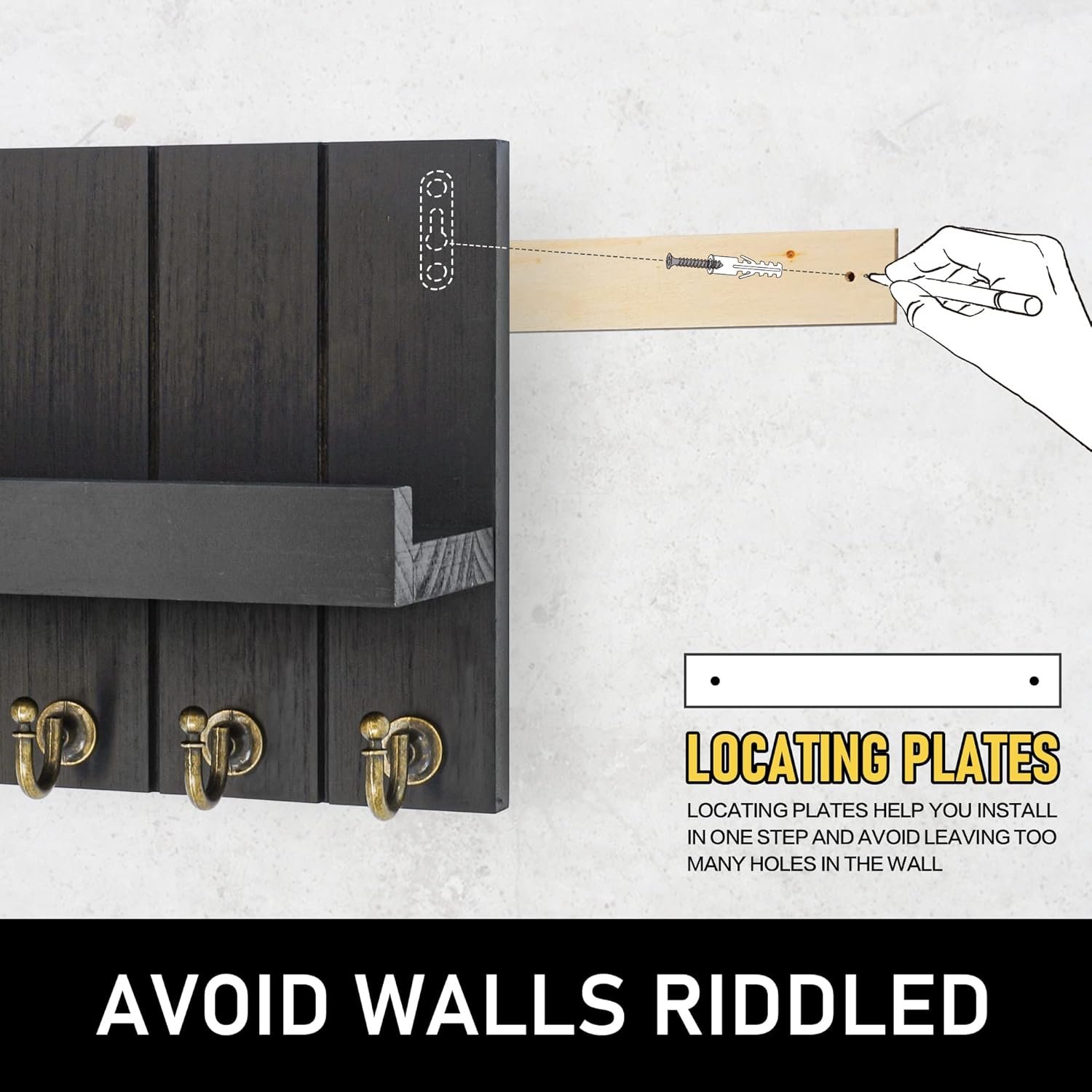 【EASY TO INSTALL】 You will receive an exquisite package contains a key holder,a package of installation hardware, a locating plate and product installation instruction manual.Please enjoy the comfort and happiness of your tidy home. Customer satisfaction is our priority, so if you have any questions, please don’t hesitate to contact us.