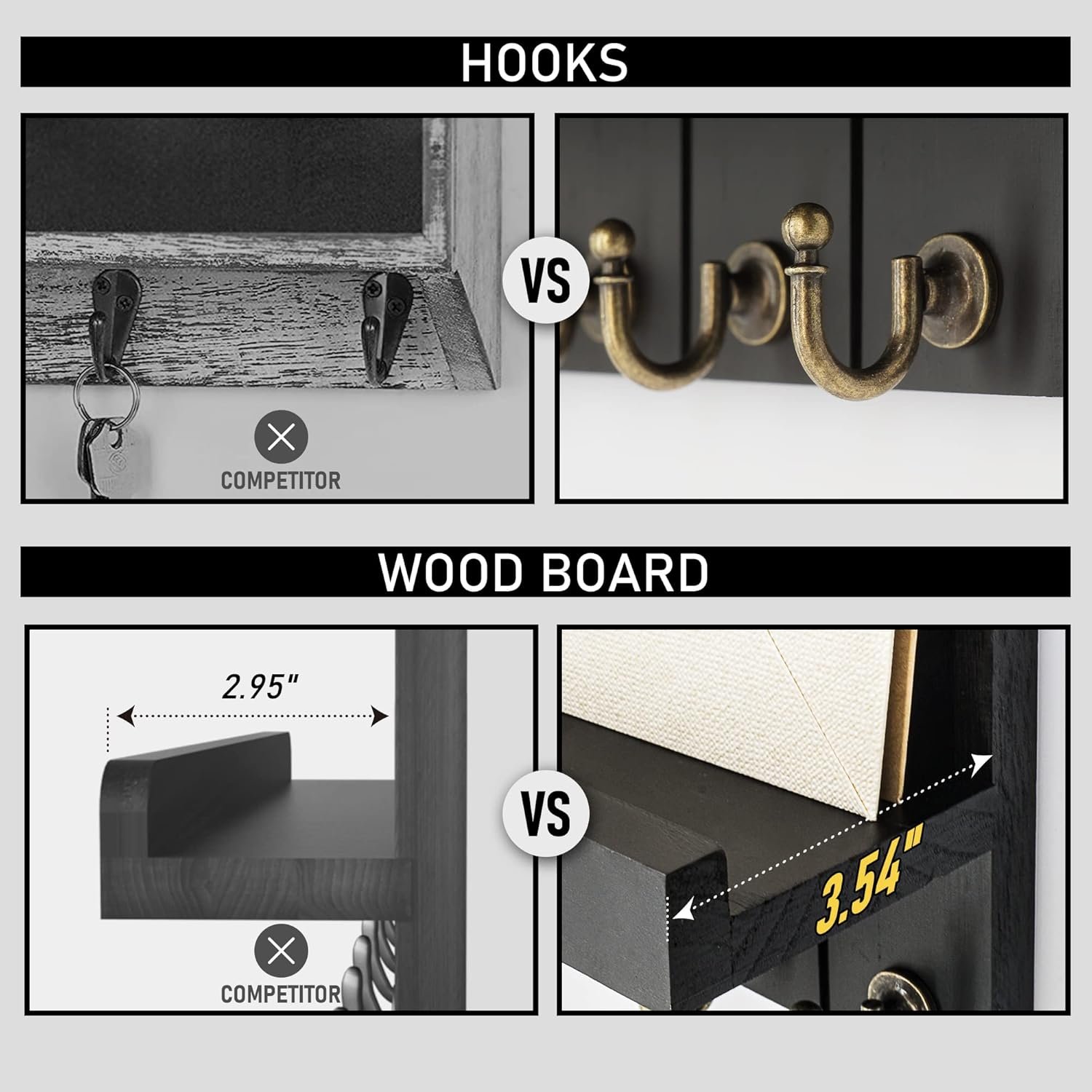 【VERSATILE ORGANIZATION】 Wall-mounted key and mail holder make the most of your wall space, and floating shelves help you organize small items such as mails, masks, magazines, newspapers, bills, wallets, glasses, umbrellas, hats, belts, pet leashes etc.The rustic wall mounted key and mail organzier helps the home reduces the mess.