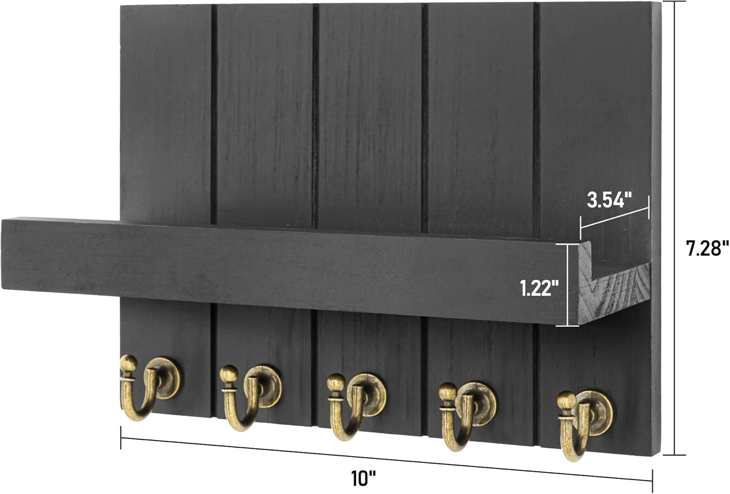 Decorative Farmhouse Key Holder for Wall – Modern Key Racks for Wall Decor Living Room and Mail Organizer with Shelf for Apartment Essentials – Home Decor Aesthetic (Black, 3.54″D x 10″W x 7.28″H)