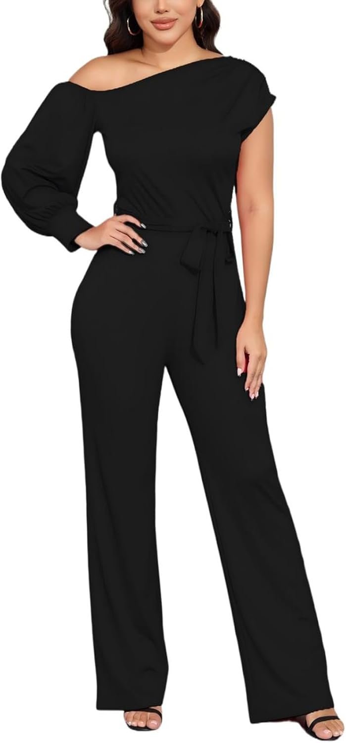 DeftSharp 2025 Women’s Sexy Cocktail Party Clubwear Casual Working Rompers Club Back Zip Belt Long Jumpsuit