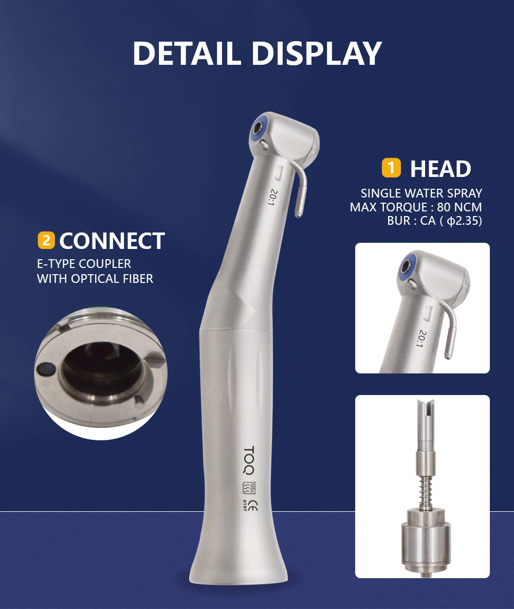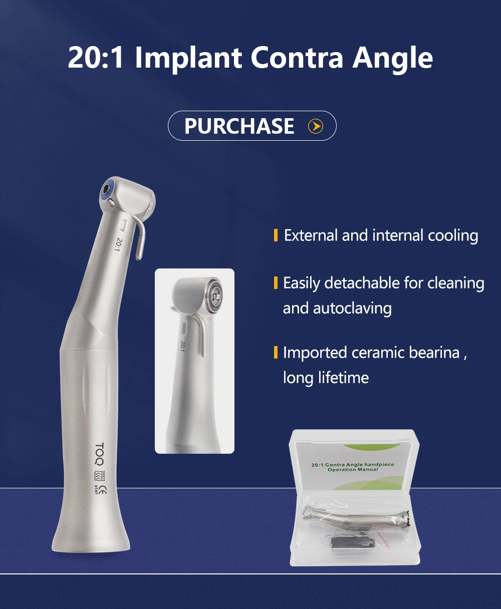 Denta Low Speed Handpiece 20:1 Implant Reduction Contra Angle Push Button Torque 80Ncm
