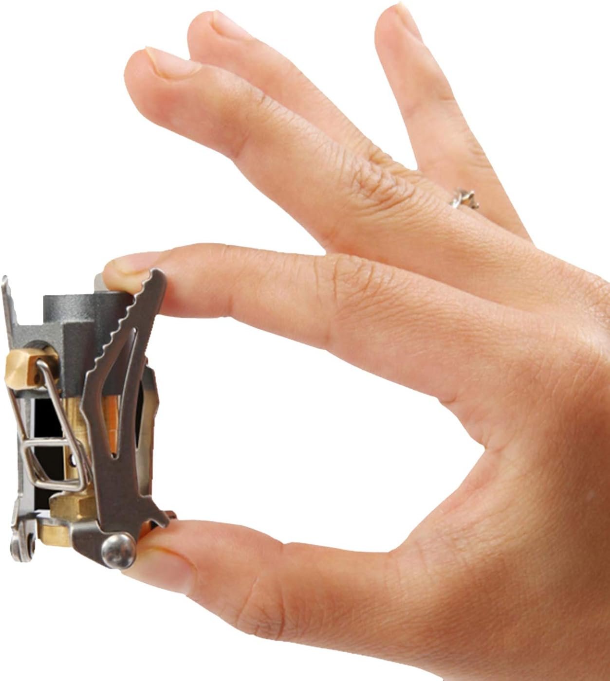 Backpacking Stove: Net weight just 1.7oz, package include a small sack for easy storage and carry. Compact and foldable mini stove, easy to set on and off. Folding size: 2×1.2in, open size: 2.7×3.1in.