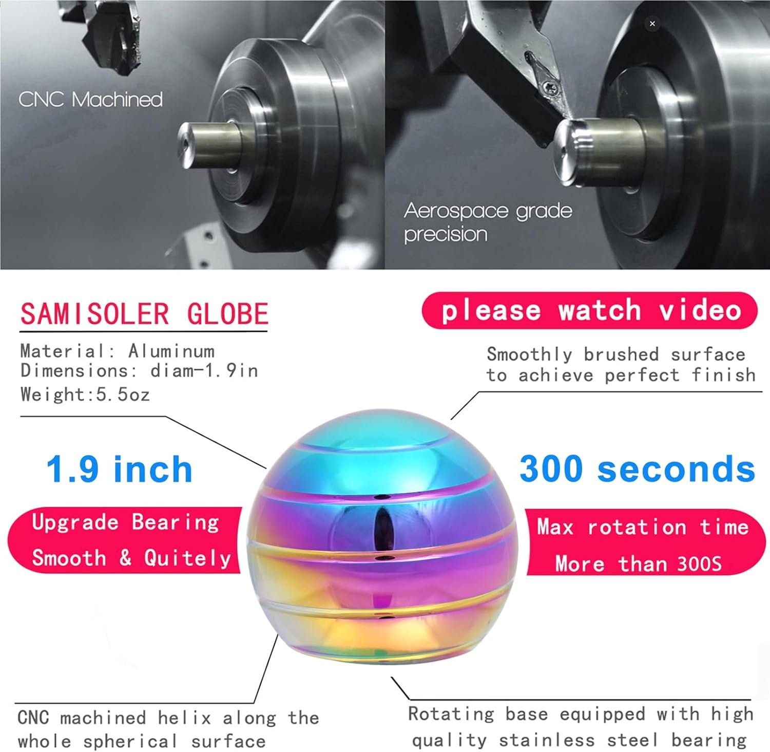 Upgrade: The bearing of desk-toys has been upgraded and rotating is longer and quieter.It can rotate more than 240 seconds at first. Max rotation time is more than 300 seconds. Built for creators, makers, thinkers, and anyone who wants to release their inner creativity and imagination.Applicable for adults & teens & kids stress relief, keep focus, cure ADHD OCD, eliminate anxiety, kill boredom, kill time or simply relax during working hours and more. Size:Diameter = 1.9in, High = 1.7in, Weight = 5.6oz. Rotation time:Optimal time = 240 seconds, Max time = more than 300 seconds Package:1* kinetic-desk fidget-toys is packed in the box.Small delicate and beautiful. It’s a perfect gift for friends. samisoler: With 8 years experience on all kinds of toy research and manufacturing. –We provided the best stress relief desk fidget-toysEach desk toys pass through high standards of strict test before packaging.Makes Your Life Relax, just spin this stress relief toys enjoy your time in any scene such as trip, class, office and other daily life-style.samisoler: We aim to produce the best cool-gadgets toy to satisfy all customers. We will do our utmost to meet your requirements.